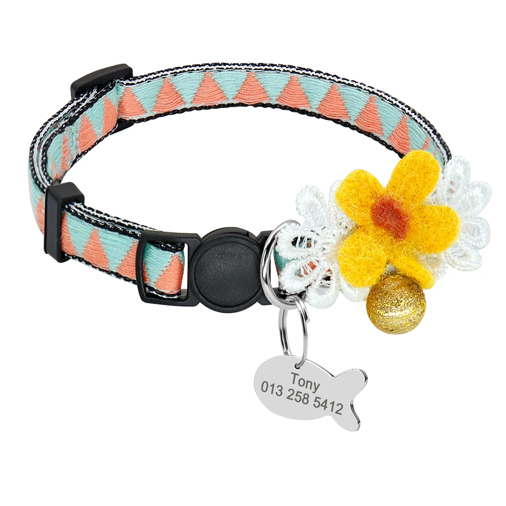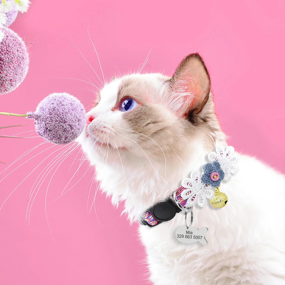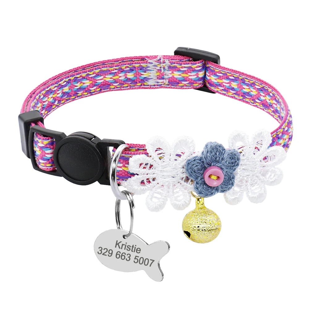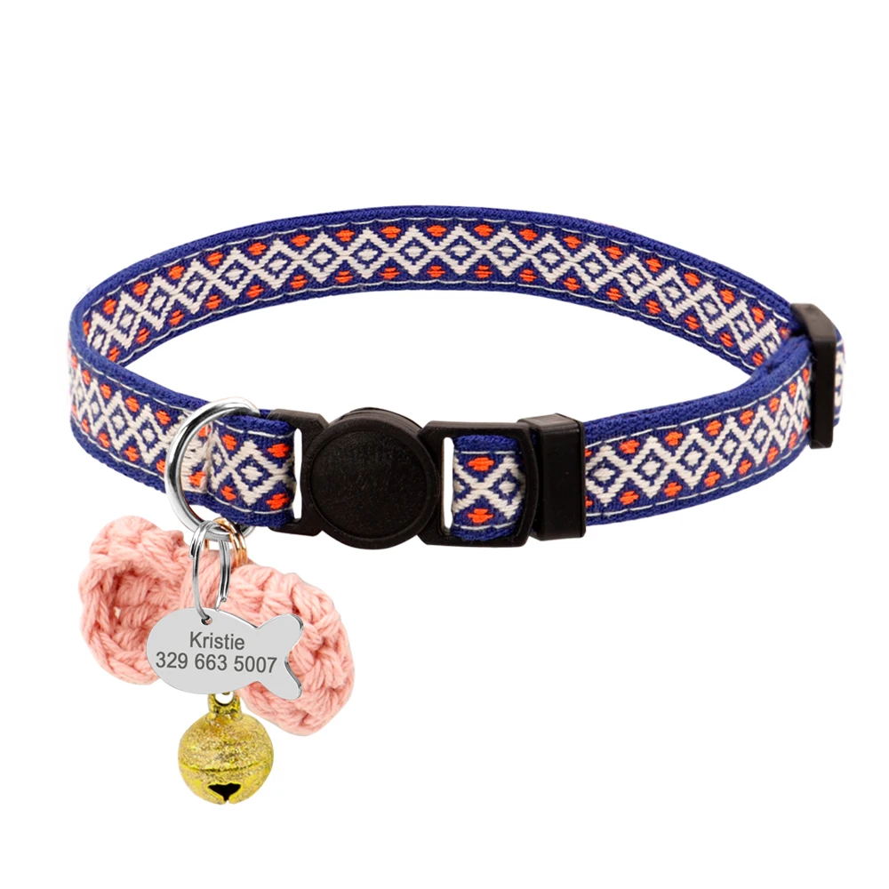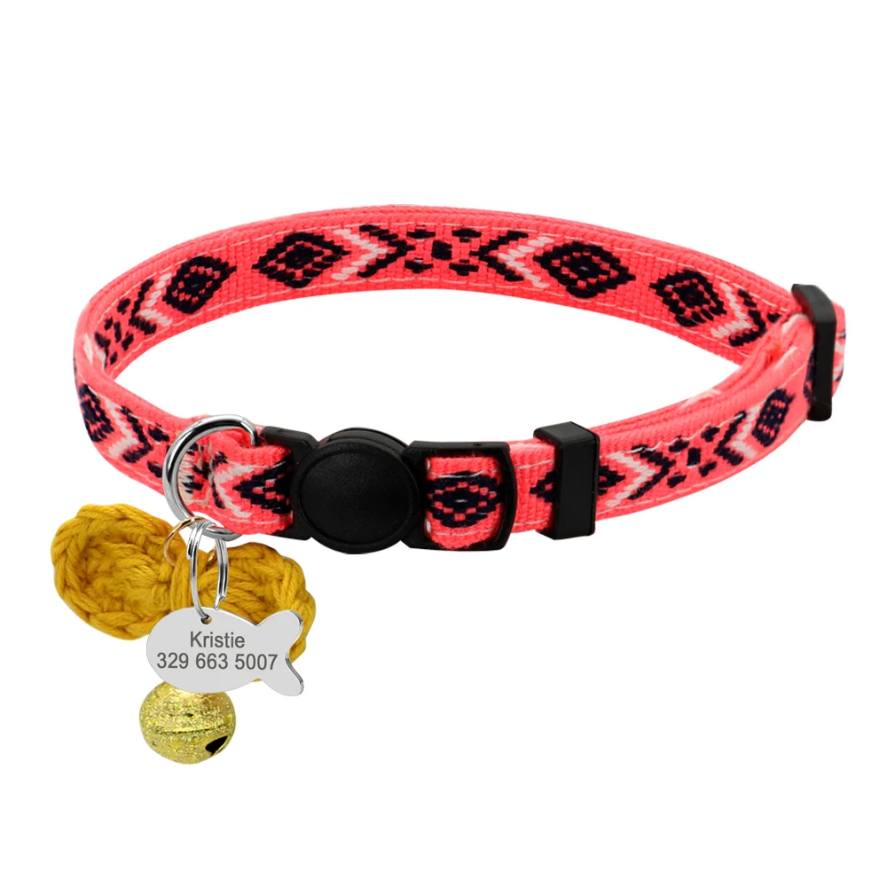 Защитные нейлоновые ошейники для кошек, Индивидуальные Ошейники для кошек, идентификационные бирки, ошейники для кошек с колокольчиком, аксессуары для домашних животных