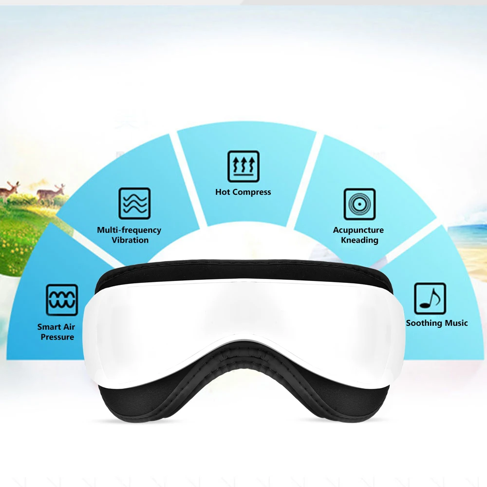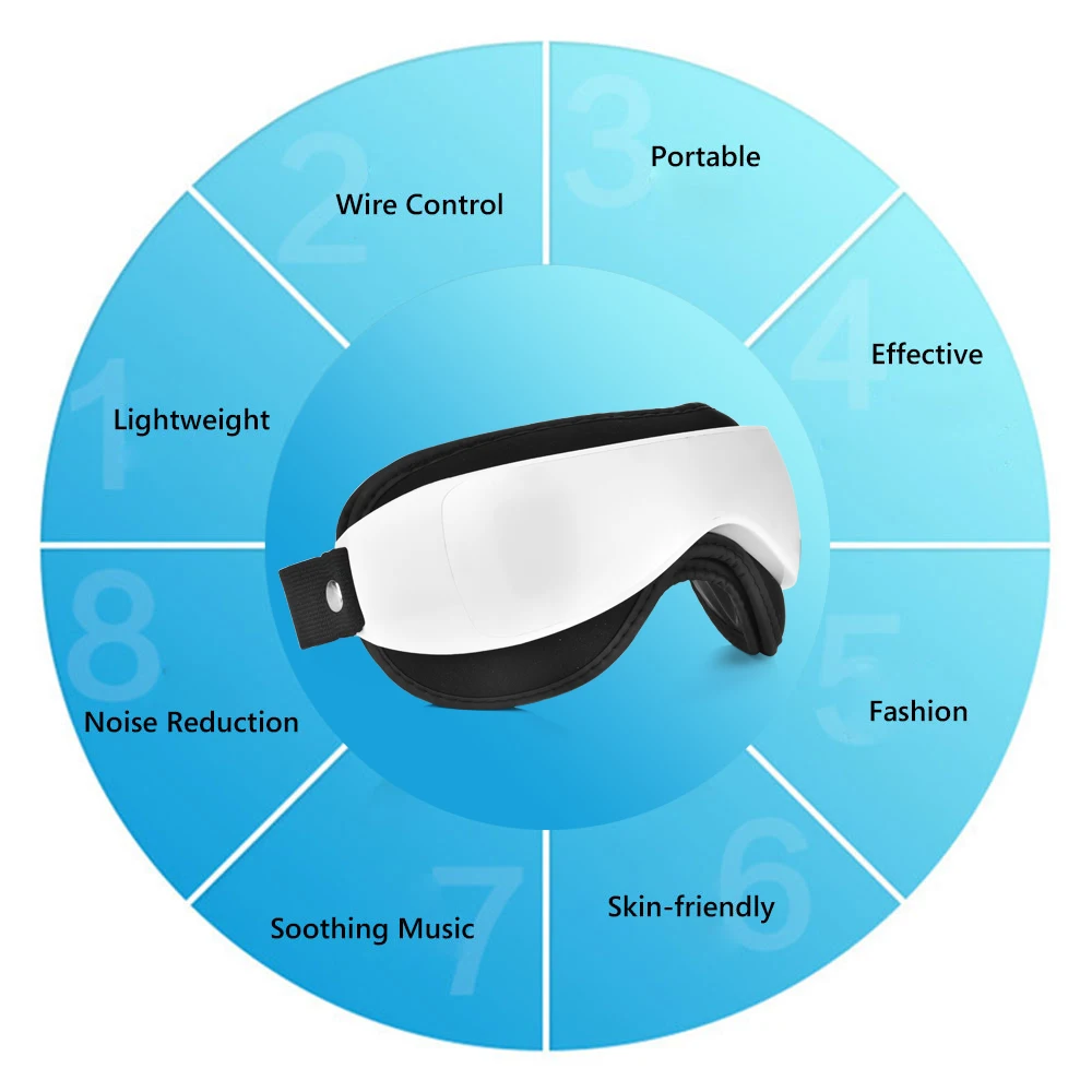 1. Умный массаж давления воздуха может идеально соответствовать вашему изгибу лица, чтобы обеспечить комфортный разминающий массаж на акупунктурных точках вокруг глаз, который может эффективно расслабить мышцы и нервы, чтобы снять усталость глаз и боль.