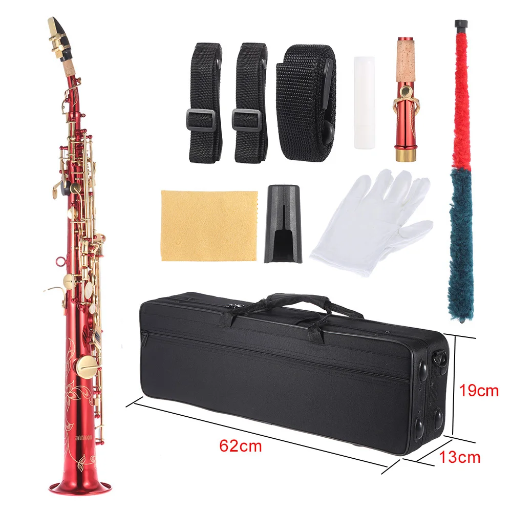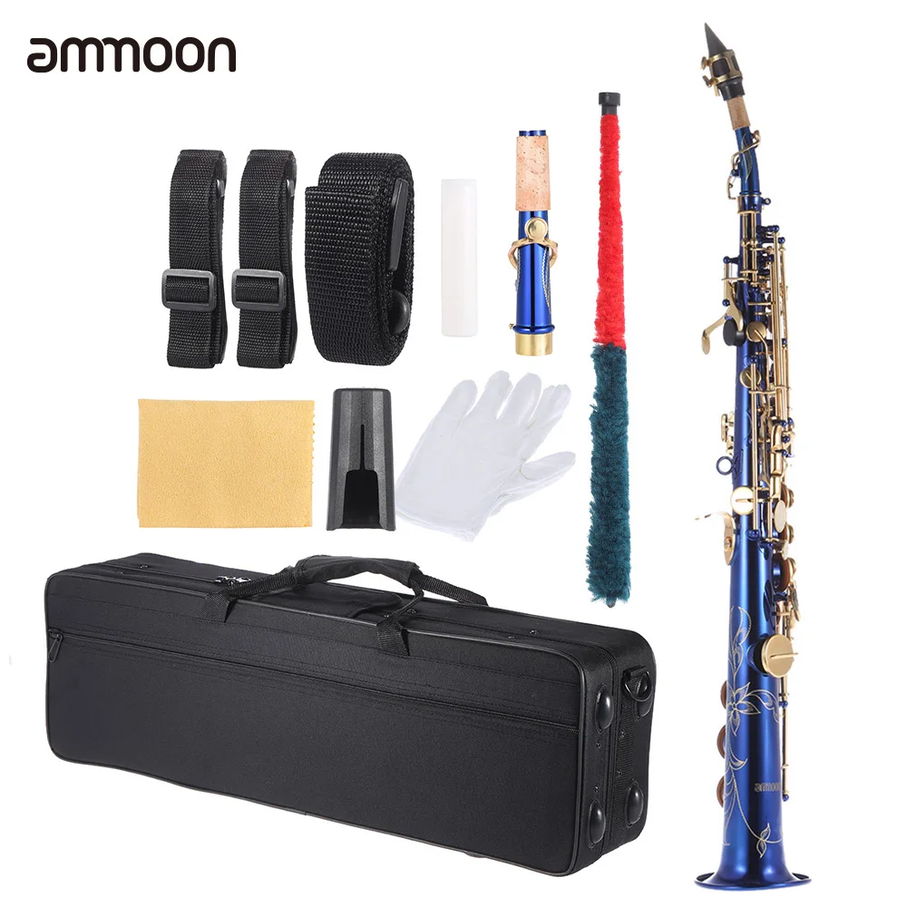 Ammoon Латунный прямой Саксофон сопрано саксофон Bb B плоский инструмент по дереву натуральный корпус с узором для ключей с чехлом для переноски