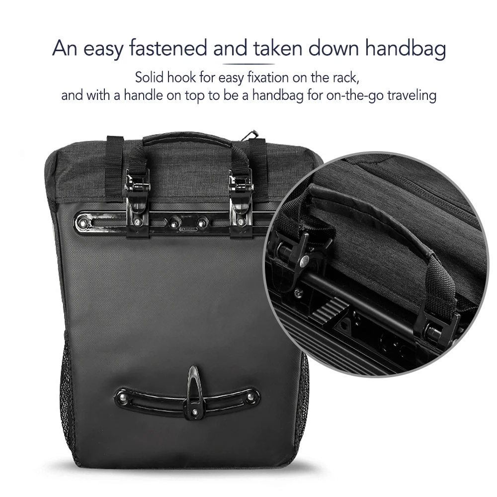 15л вместительная сумка для багажника с широким открытием легко надевать и вынимать ваши вещи. С твердой ручкой сверху, вы можете использовать его в качестве сумочки. Эта очень простая и практичная велосипедная сумка станет отличным компаньоном для вашей поездки на открытом воздухе ~