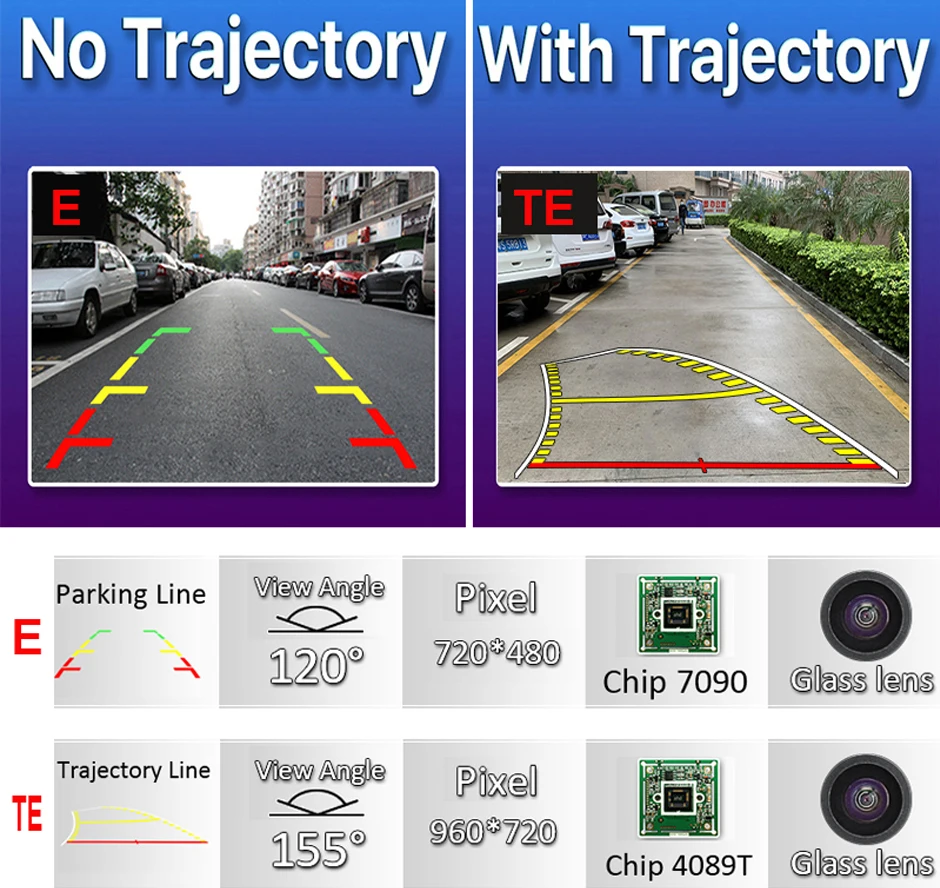 Серия TE: эта камера встроена в чип динамической траектории. Поддержка траектории парковки