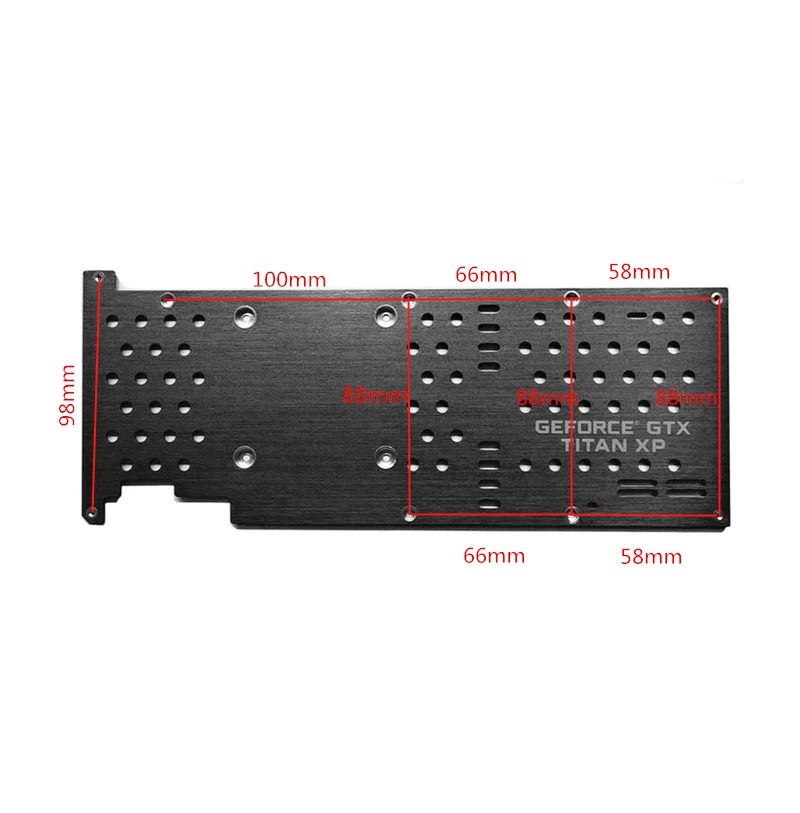 Название продукта: объединительная плата видеокарты Модель продукта: подходит для GEFORCE TITAN XP Версия продукта: универсальная версия OEM Функции продукта: Защитите видеокарту от истирания и сделайте ее красивее Преимущества продукта: поставляется с полным изоляционным слоем для защиты печатной платы и предотвращения проводимости