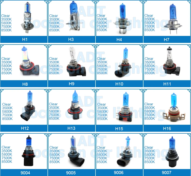 1. Плазменная лампочка не просто обычная Галогенные лампы; 2. Плазменные лампы содержат ксенон и Криптоновые газы, длительный срок службы; 3. Высокоэффективная кварцевая лампа, Новый и улучшенный двухслойный ион Покрытие; 4. Отличная теплостойкость 5. Точное крепление лампы в основании и Совершенно новая базовая концепция 6. Полный спектр применения: Туман, ближний свет, дальний свет 7. Цвет в наличии: синий, белый, супер Белый, золотой, белый
