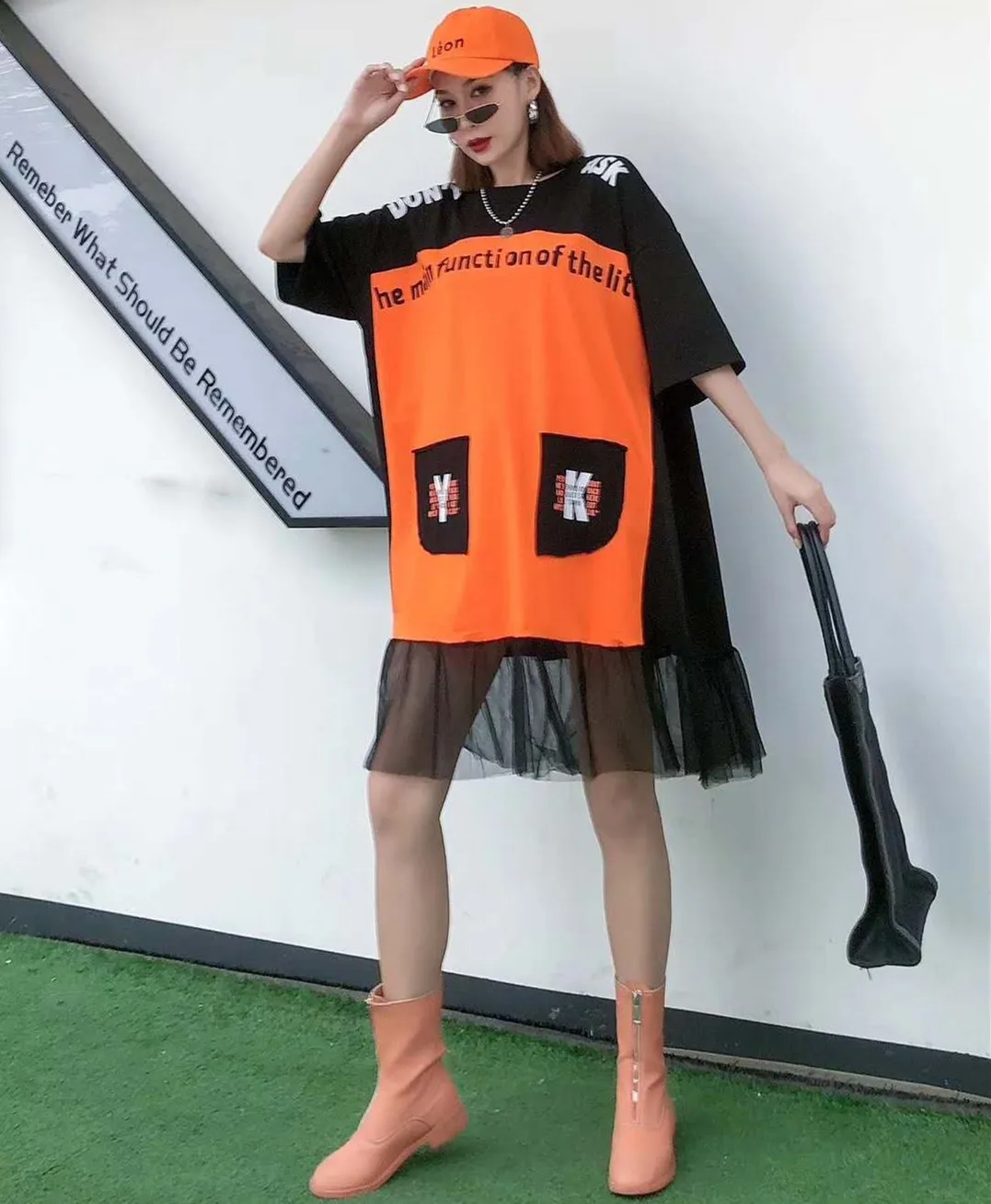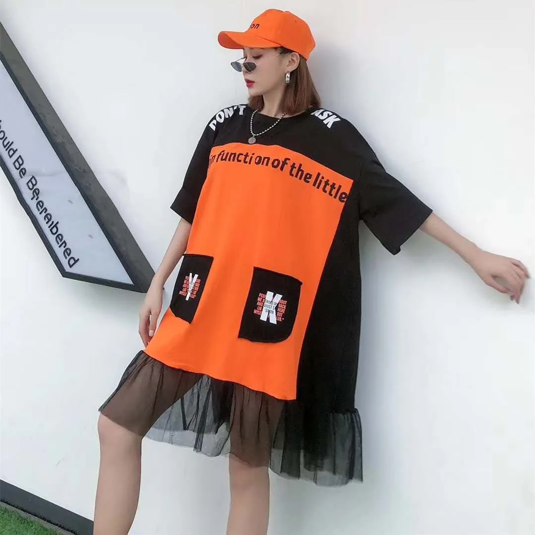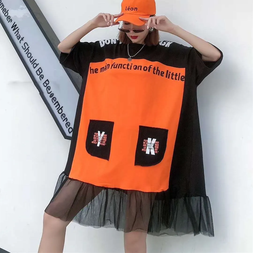 QING MO голубое Оранжевое Женское свободное платье 2020 весеннее женское лоскутное платье