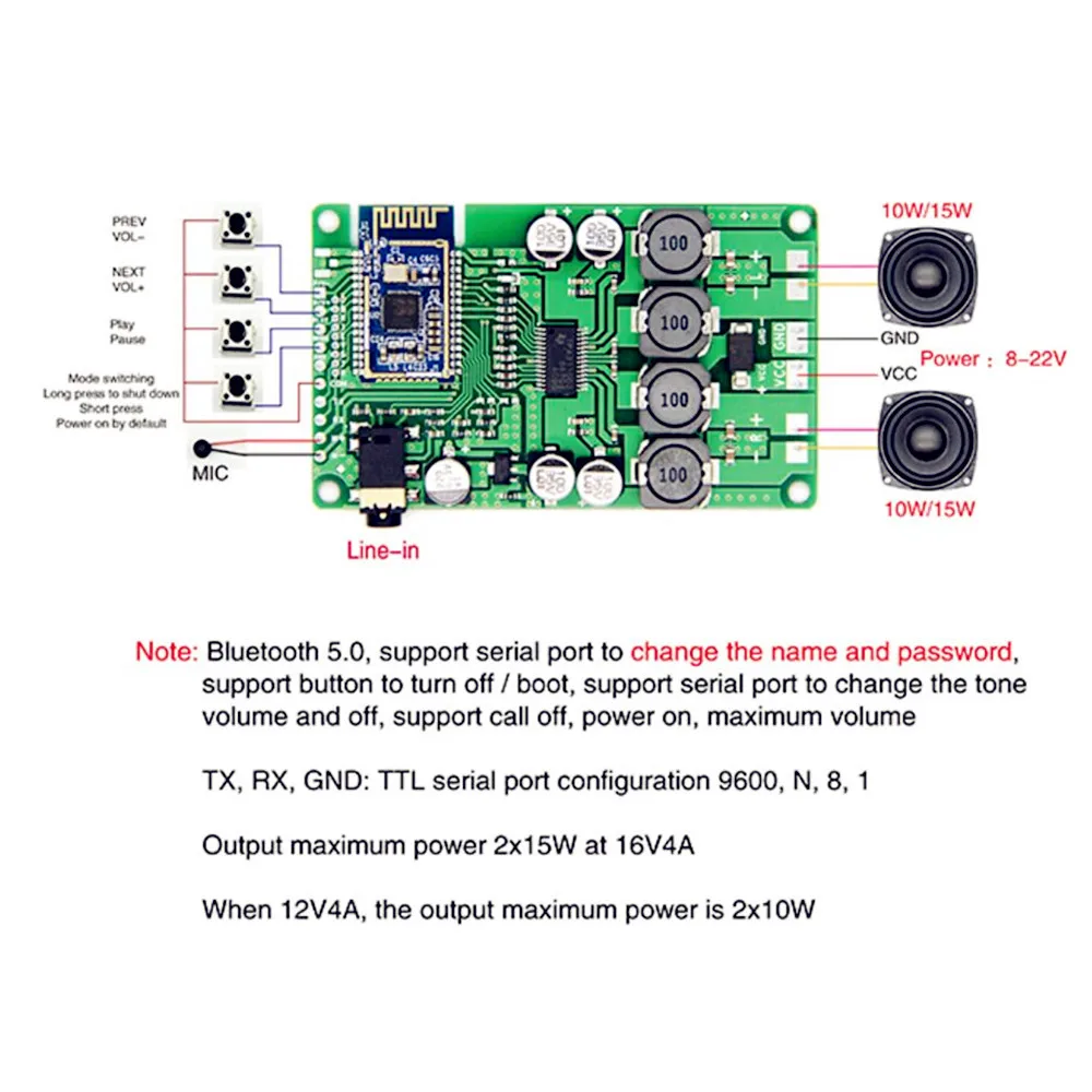 Support button shutdown / boot, support serial port to change the tone volume and off, support call off, power on, default volume