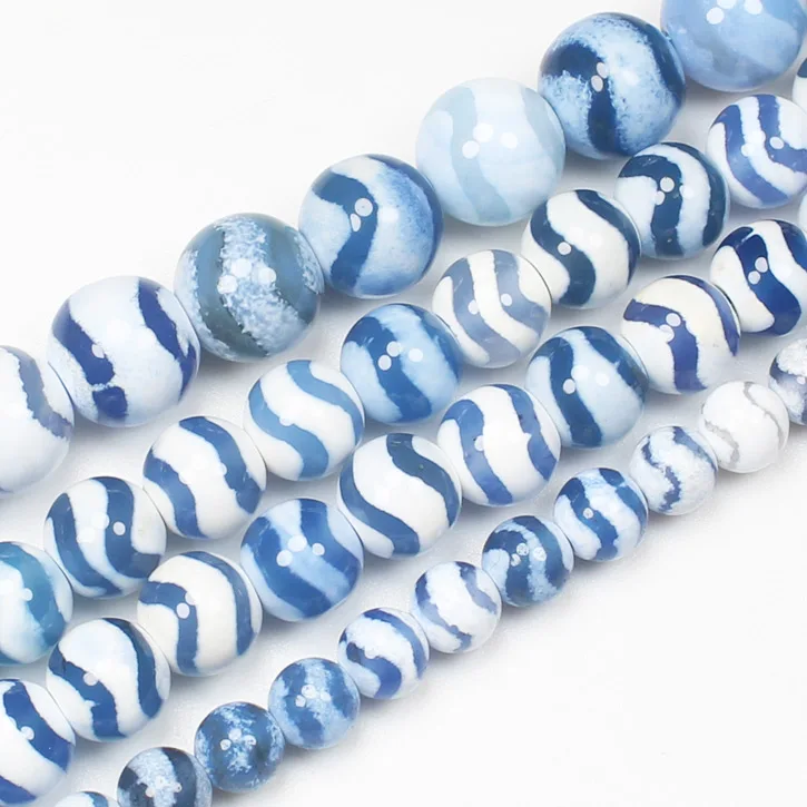 Натуральный голубой Тибет ДЗИ агат 6-12 мм круглые бусины 15 дюймов