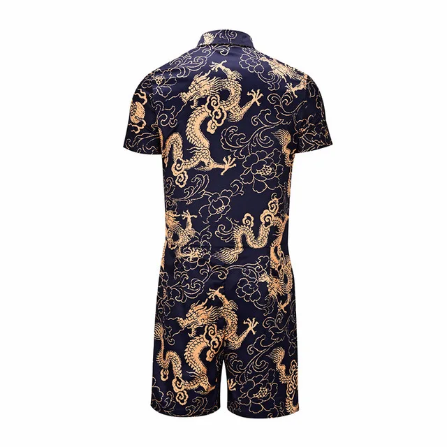 Мужской летний комбинезон с коротким рукавом, хлопковый цельный комбинезон с принтом дракона