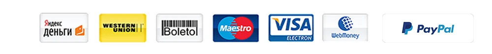 Способы оплаты: 1. AliExpress поддерживает Visa , Boleto , MasterCard , Maestro дебетовые карты, Western Union, веб-деньги, QIWI и банковский перевод через банки. 2. Если у вас все еще есть какие-либо вопросы по оплате, не стесняйтесь связаться с нами.