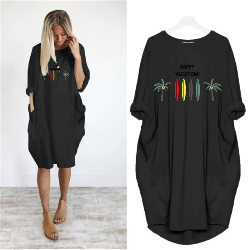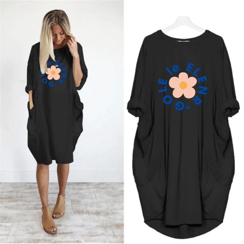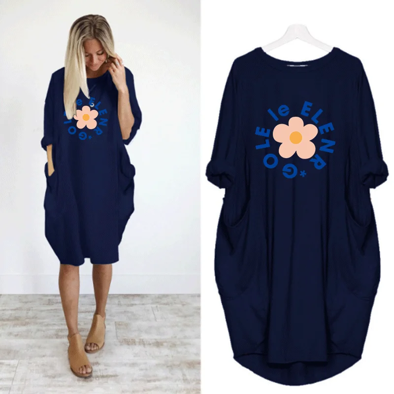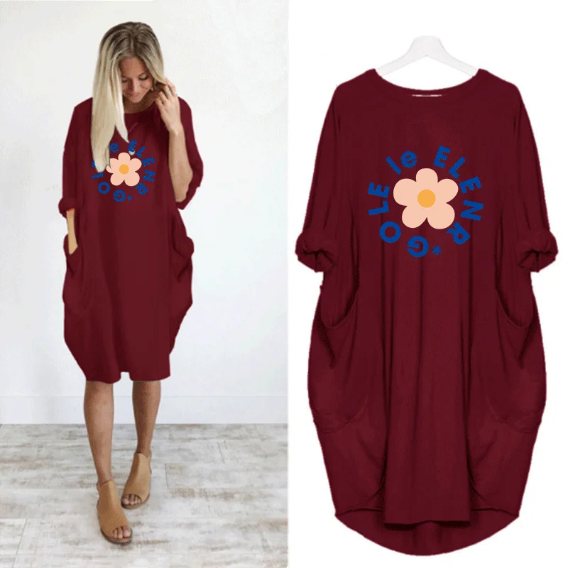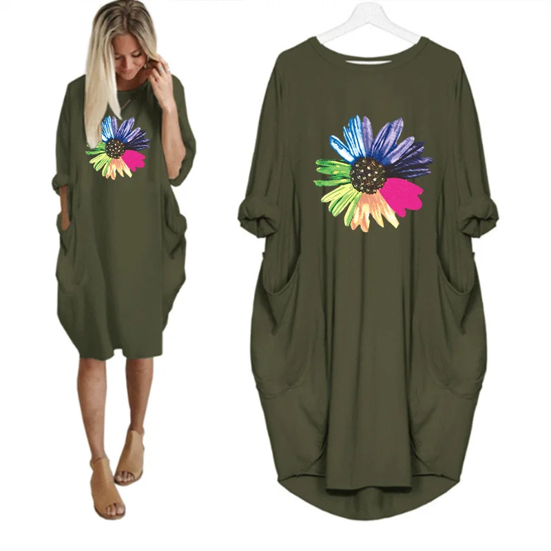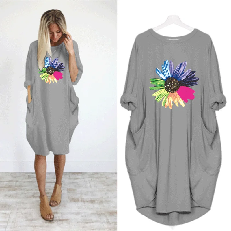 Женское платье с милым цветочным принтом и карманом, повседневные свободные винтажные вечерние платья для девочек на осень размера плюс M-5XL, одежда Kawaii, женские платья 2020