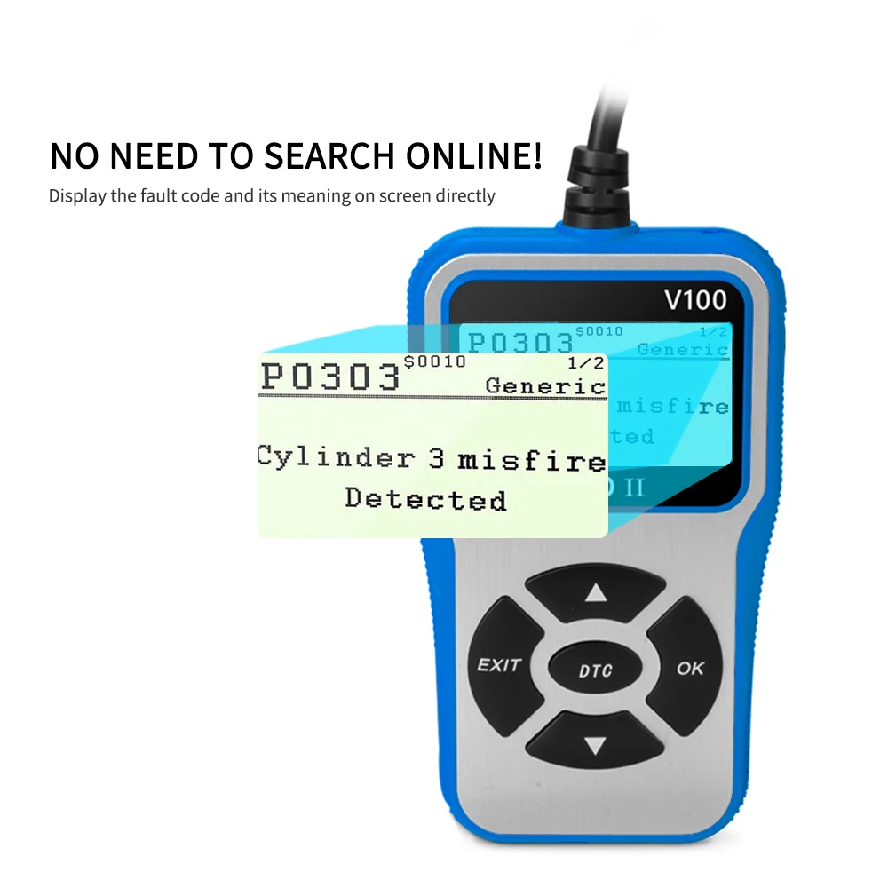 Современный дизайн --- этот мини ручной код читателя Особенности Большой легко читаемый освещенная контржурным светом ЖК-дисплей экран, многоязычное меню и определения кода и стандартный 16-контактный диагностический O-B-D-II разъем; Никаких дополнительных кабелей не требуется.