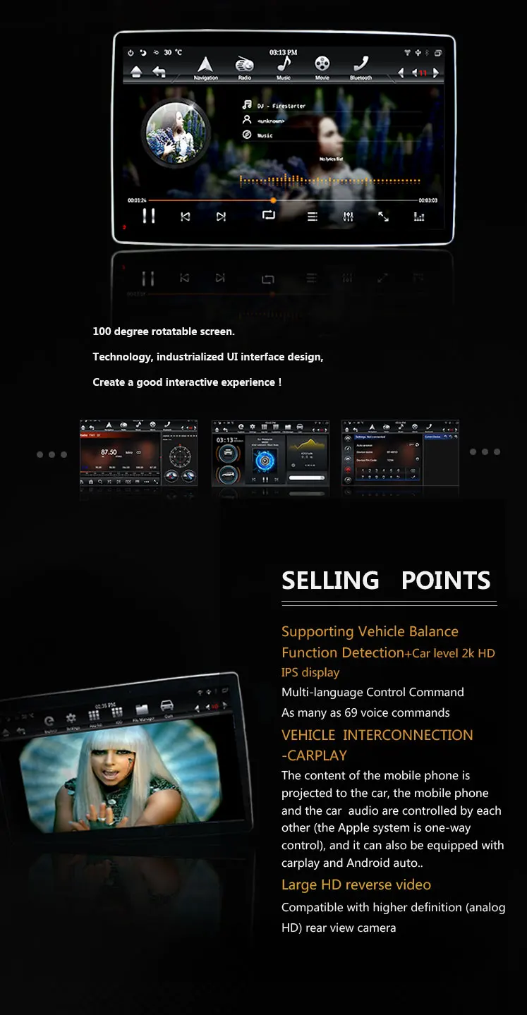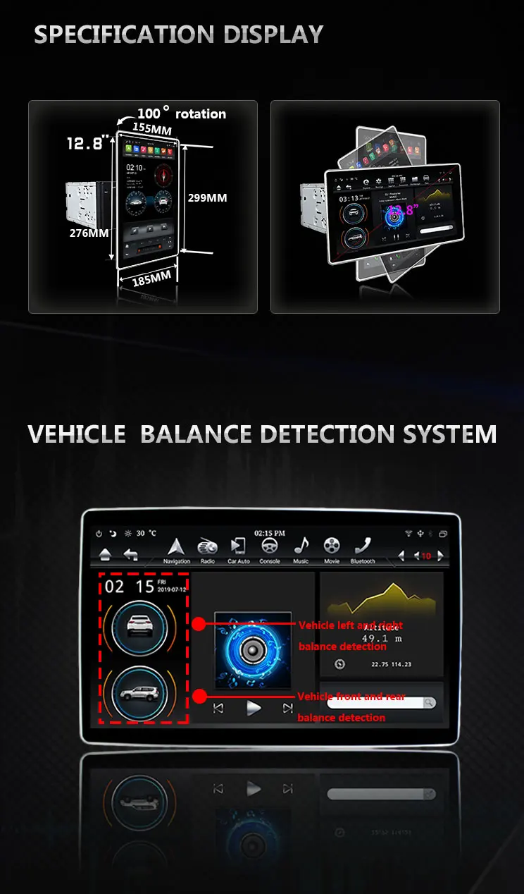Klyde KD-12501 ROM 32 Гб 64 Гб 2 din tesla универсальный автомобильный dvd плеер с поворотом на 100 градусов с системой android IPS экран Автомобильное видео Встроенный DSP Размер экрана: 12,8" Экран пикселей: 1920*1080 IPS экран ОС: Система Android 9,0 CPU: Rockchip PX6(3399) Cotex A72 (1,8 ГГц) + A53 (1,4 ГГц), 6 жил Оперативная память: SAMSUNG 4 ГБ DDR3 Nand Flash : 64 ГБ Емкостный сенсорный экран QCC3007 BT5.0 + + TEF6851 радио + TDA7388 усилитель GPS + AUX IN + DVR + Простое подключение AHD вход камеры заднего вида Функция Festure: HDMI, голосовое управление, Carplay,Android Auto