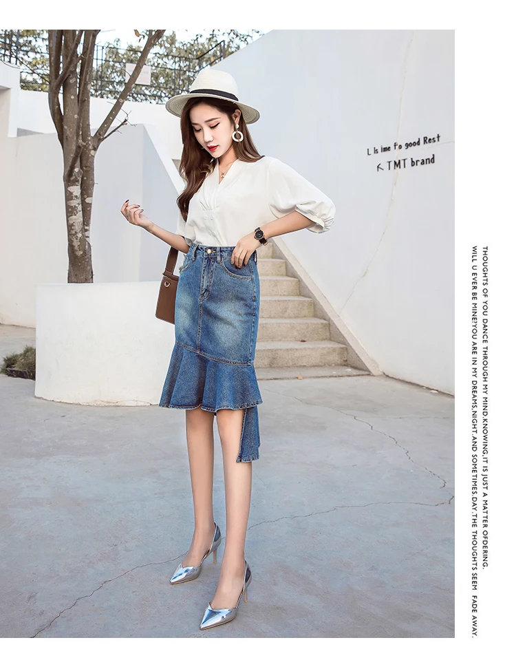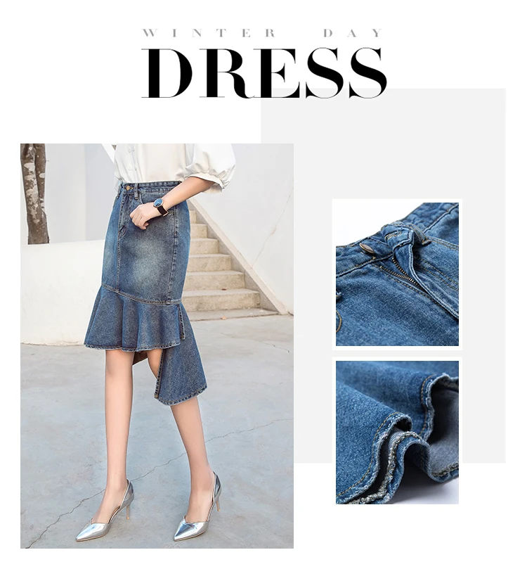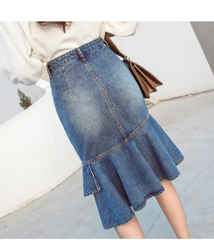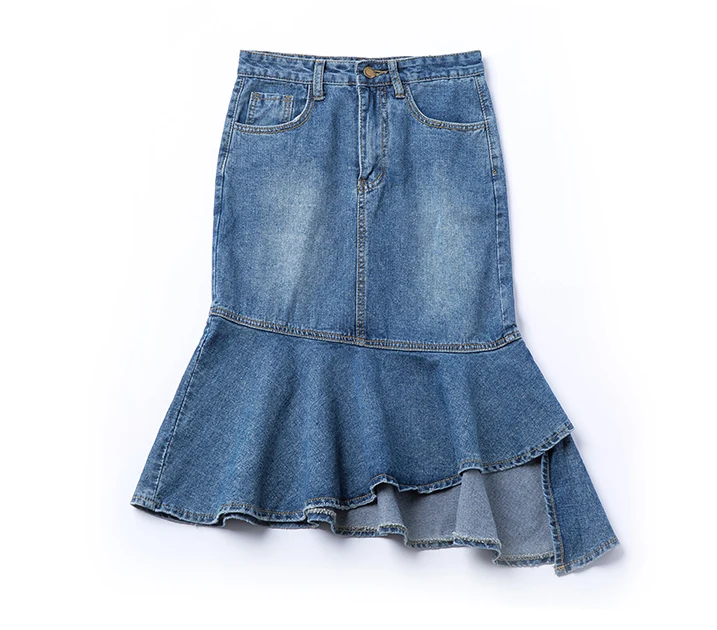 Летняя джинсовая юбка русалки, Женская юбка средней длины с оборками, завышенная талия, не растягивается, Con 2020 falda B03214B