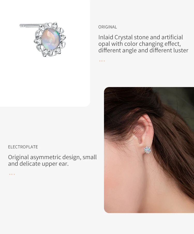 -Твердое Серебро S925 пробы настоящее золото -Брамблы завернуты в переливающийся опал -Инкрустированный кристаллический камень и искусственный опал с эффектом изменения цвета, разный угол и различный блеск -· Ассиметричный дизайн придает красоту лицу, с богатыми слоями.