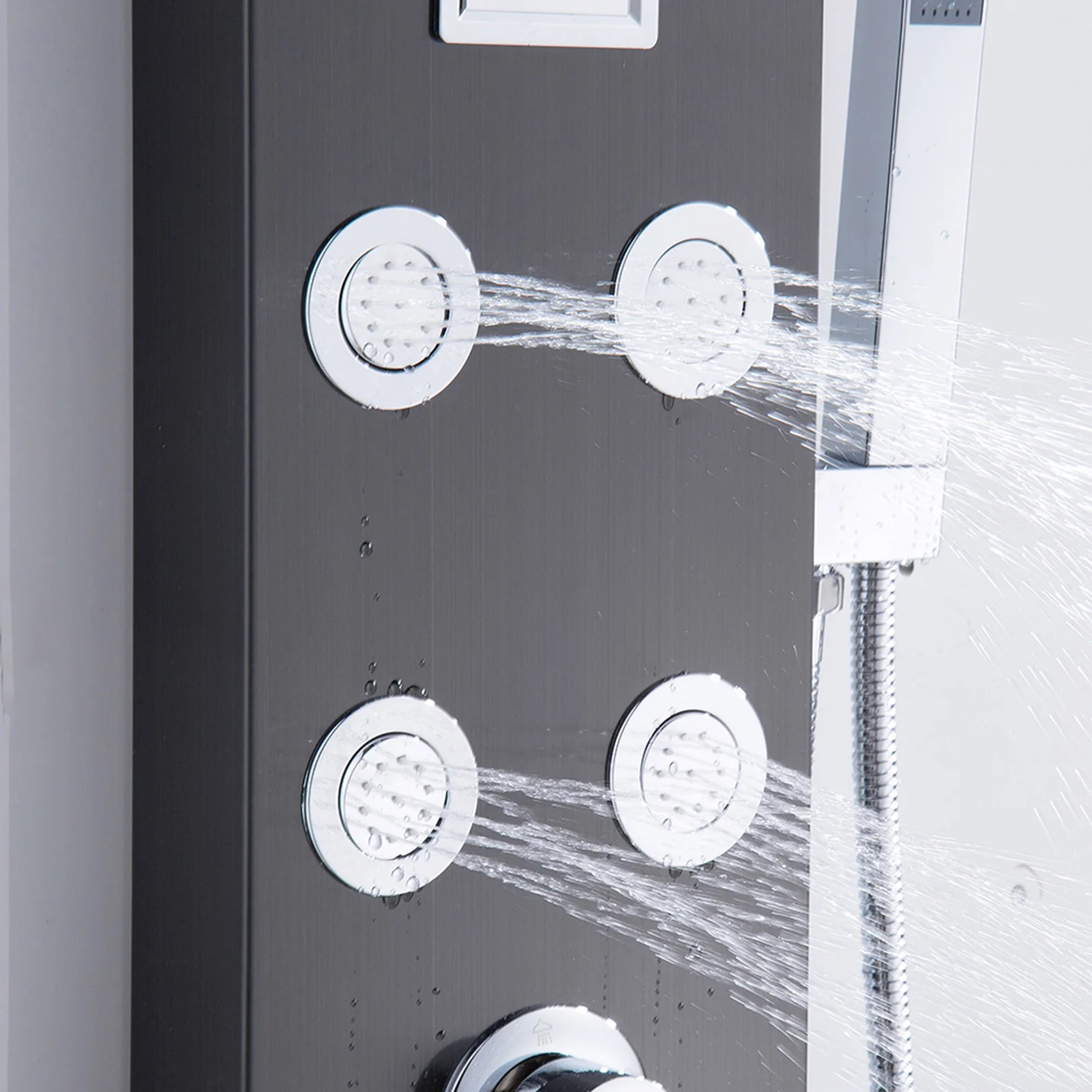 3. Включает функцию водопада, отображение температуры, шесть круглых струй, тонкий ручной душ и