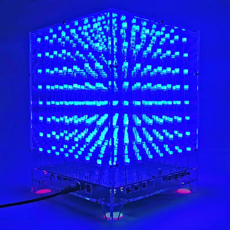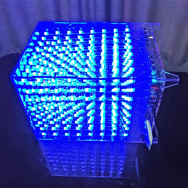 3D квадратный 8x8x8 светодиодный синий светильник MP3 музыкальный спектр печатная