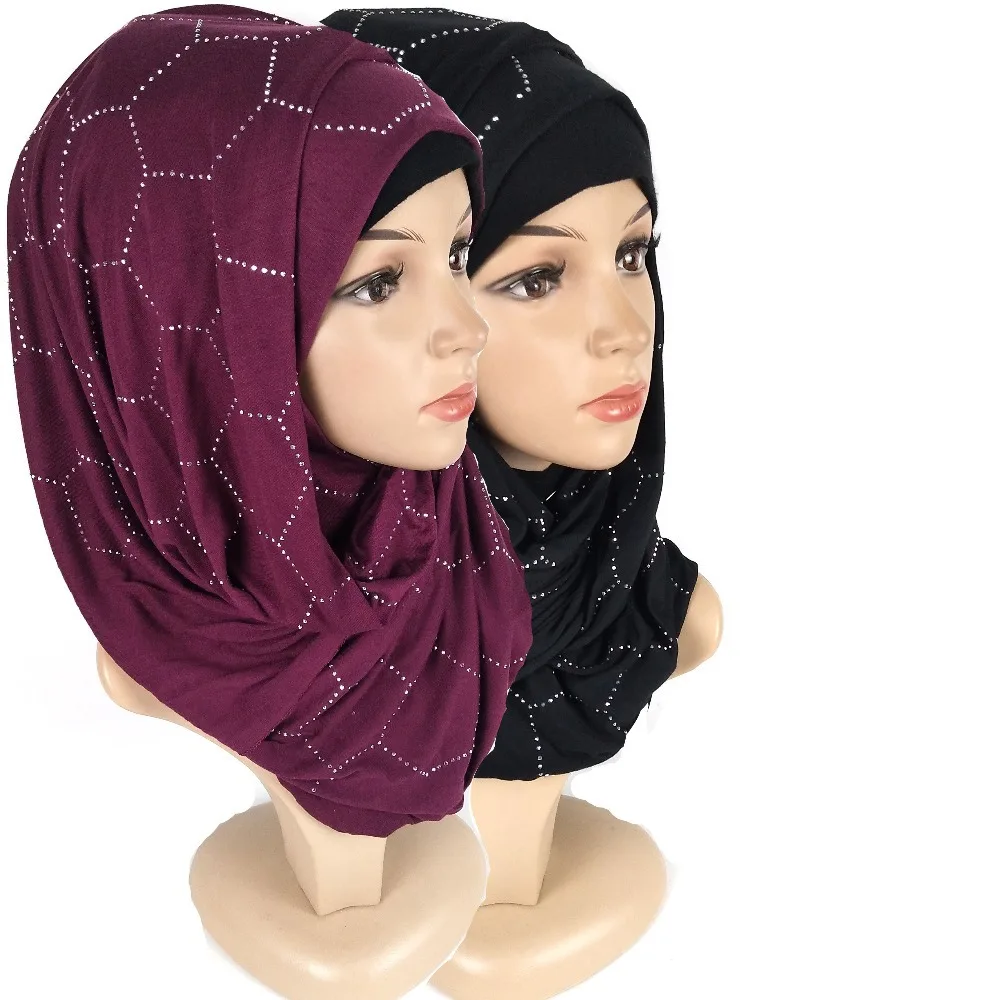 2020 Новый шестигранный бриллиантовый Джерси-шарф Хиджаб Женский хлопковый платок мусульманский женский шарф хиджаб femme musulman 1 шт