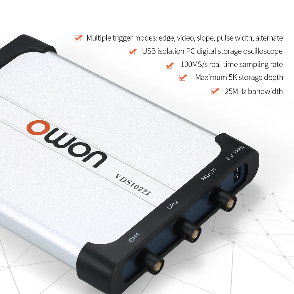 Двухканальный осциллограф, очень тонкий дизайн довольно портативный.