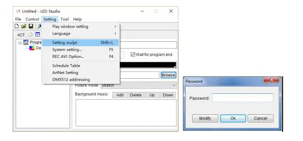 Откройте «светодиодный программное обеспечение для студии», нажмите «Настройка»-«Настройка системы».