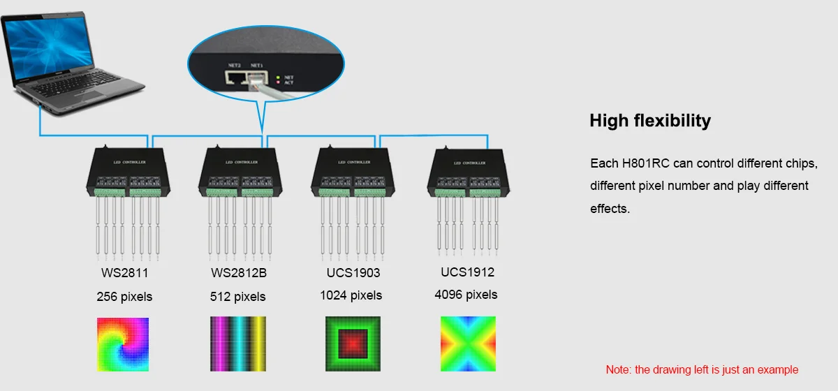 H801RC 8 портов светодиодный контроллер пикселей работает с RJ45 компьютерная сеть Marster контроллер макс. 8192 пикселей программа светодиодный контроллер