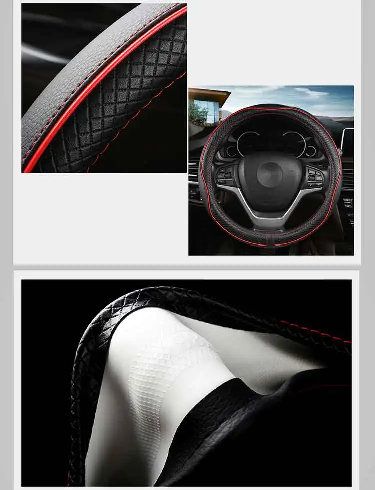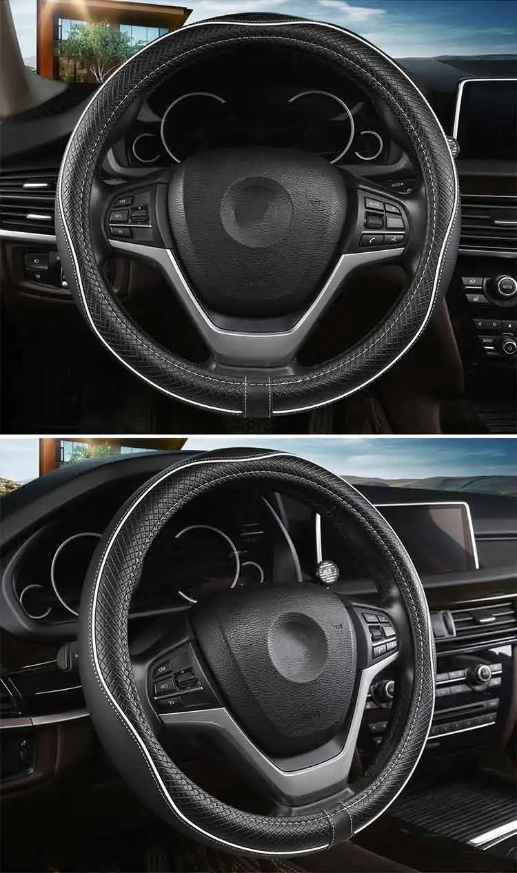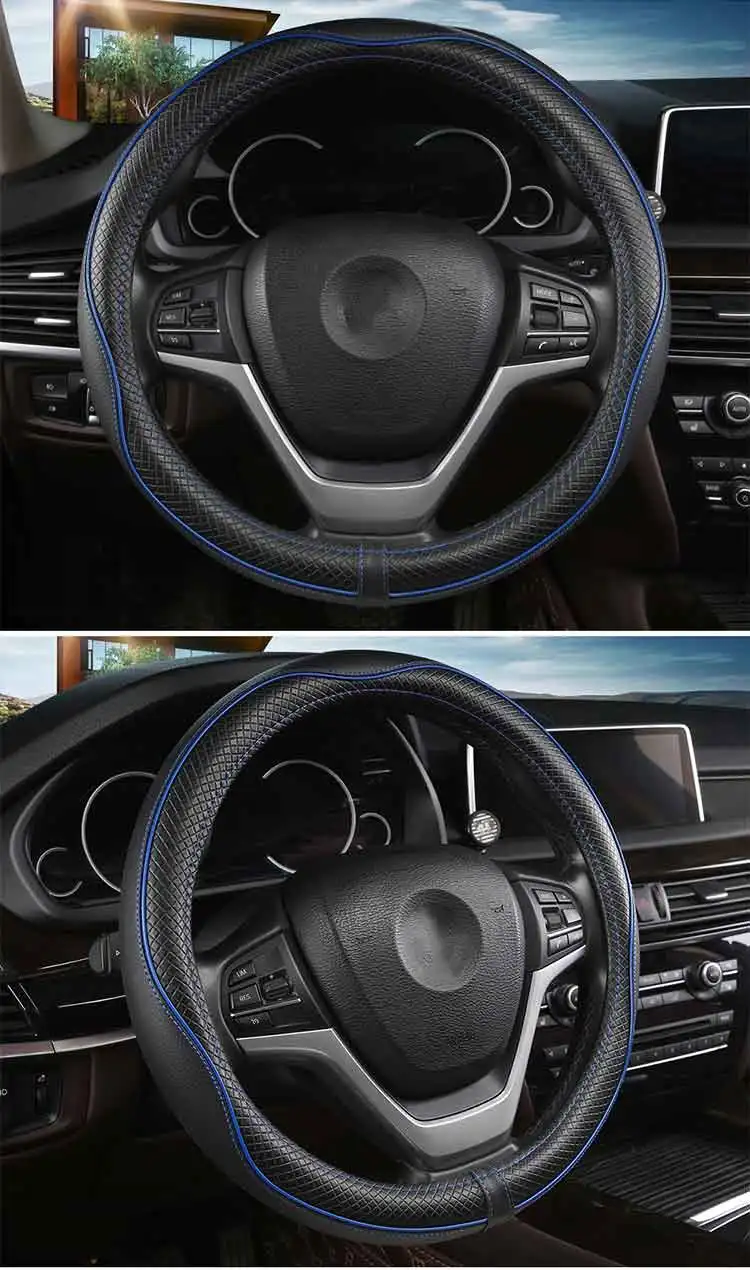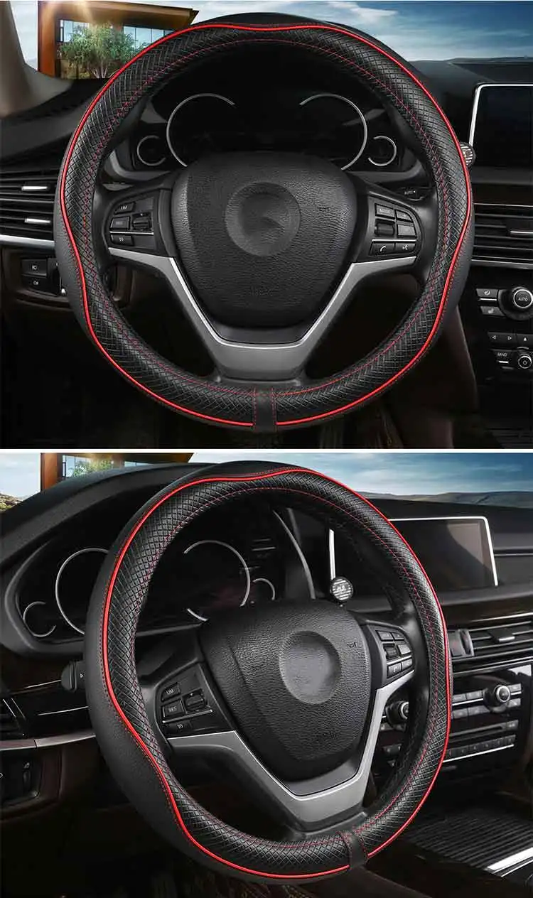 1. Внешний слой чехла для руля-это кожа, внутренний слой-резина, без запаха, безвредная и прочная. 2. Если внешний диаметр вашего автомобильного руля 38 см (15 дюймов), он идеально подходит для вашего автомобиля.