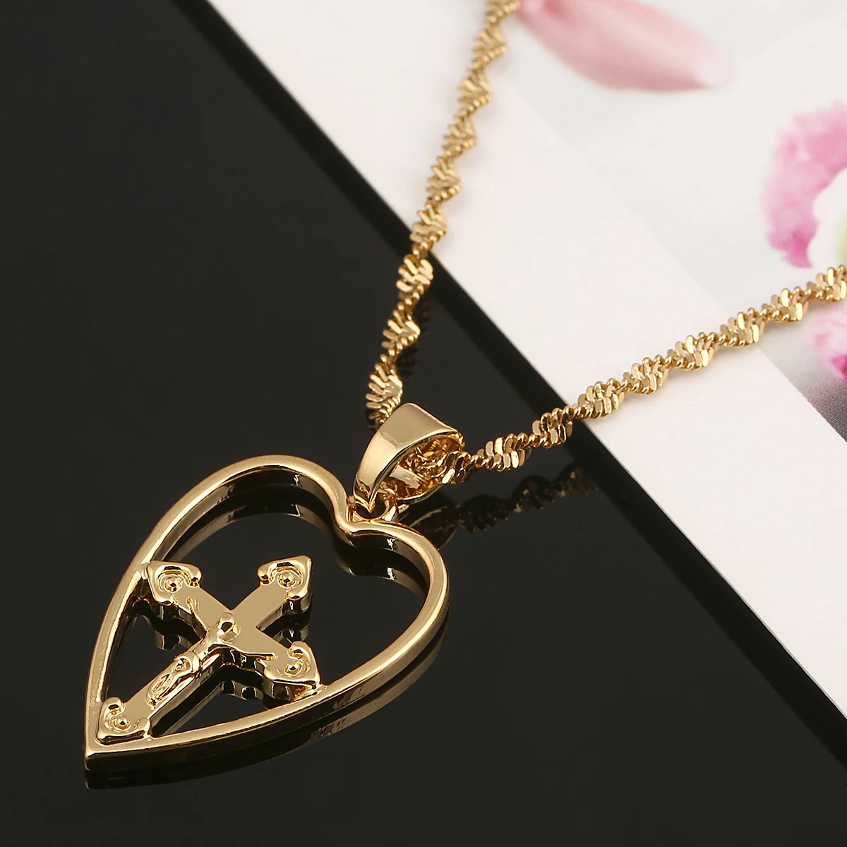 Золотой цвет религиозное сердце Иисус кулон ожерелье для женщин христианская цепочка Ювелирные изделия Аксессуары
