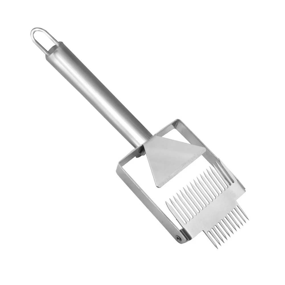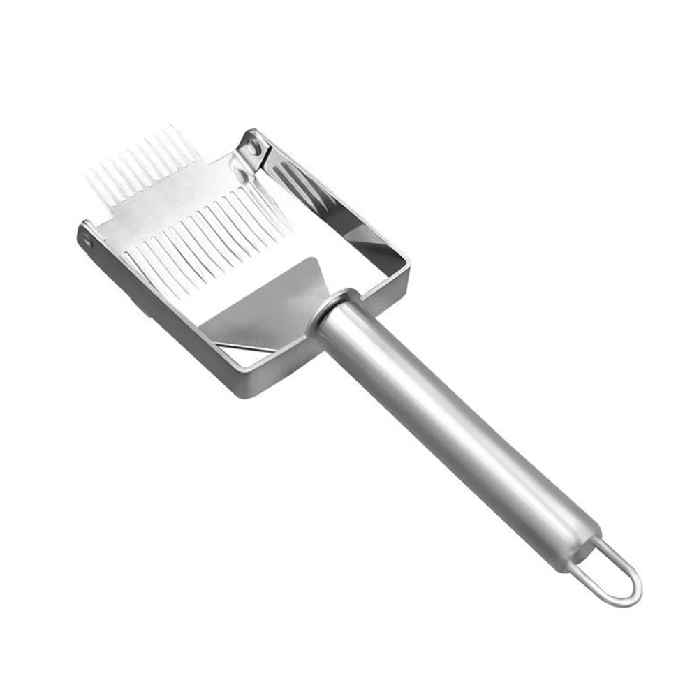 Эта вилка для меда предназначена для легкого и эффективного отрезания восковых плит от медовых рам.