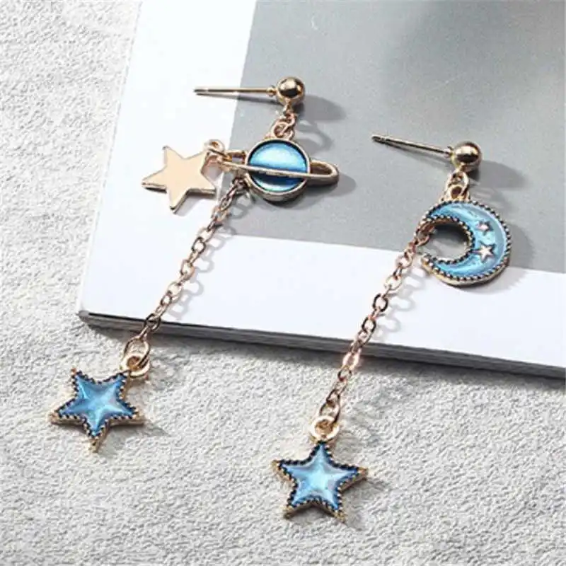 Посылка включает в себя: 1 пара серьги в виде Луны и звезды