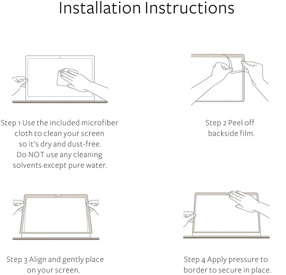 В комплект входит защита экрана, Безворсовая Ткань для очистки.