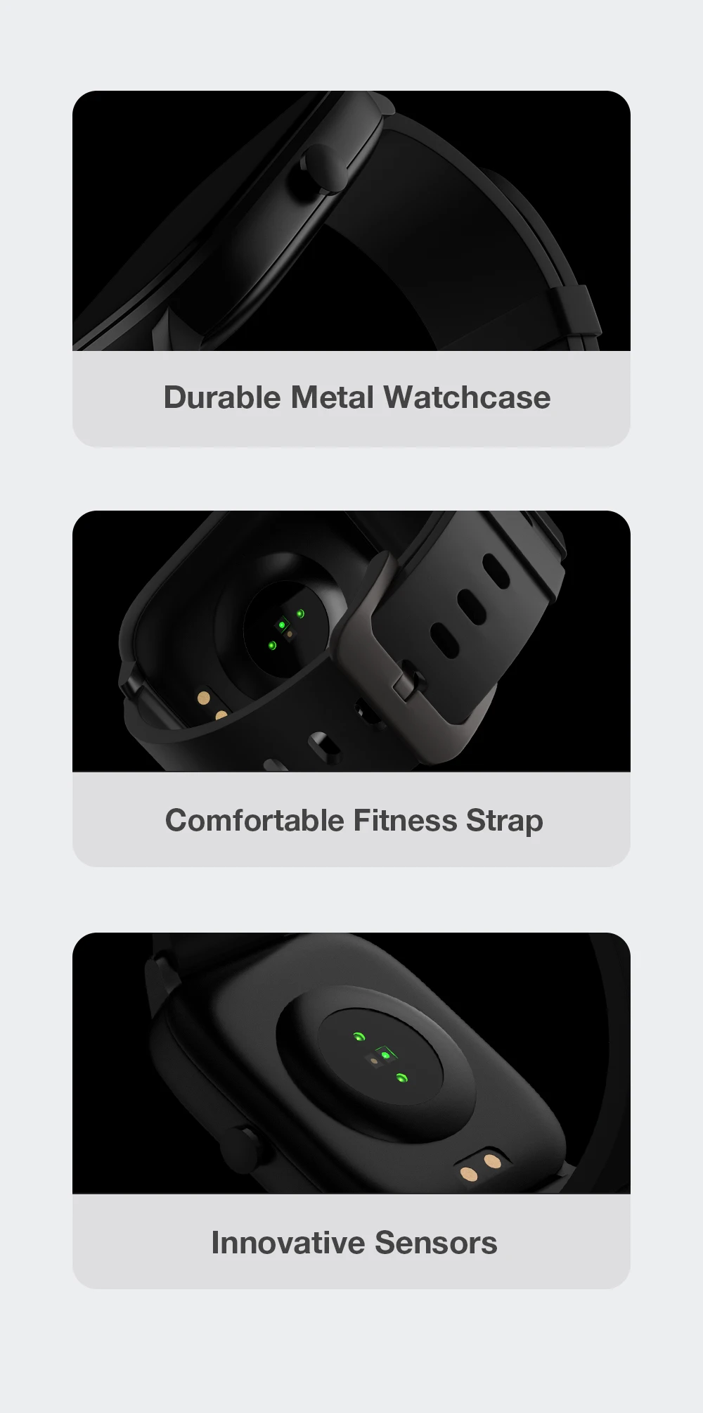Изящное мастерство запечатлено в деталях корпуса часов и его классическом дизайне. Прочный металлический корпус Удобный фитнес-ремень Инновационные датчики
