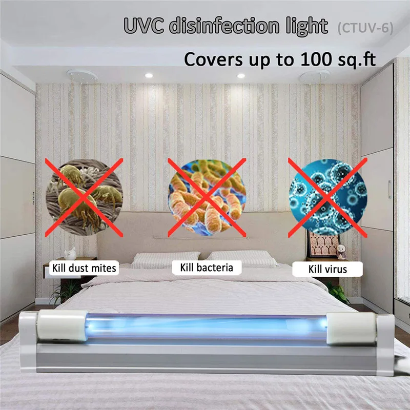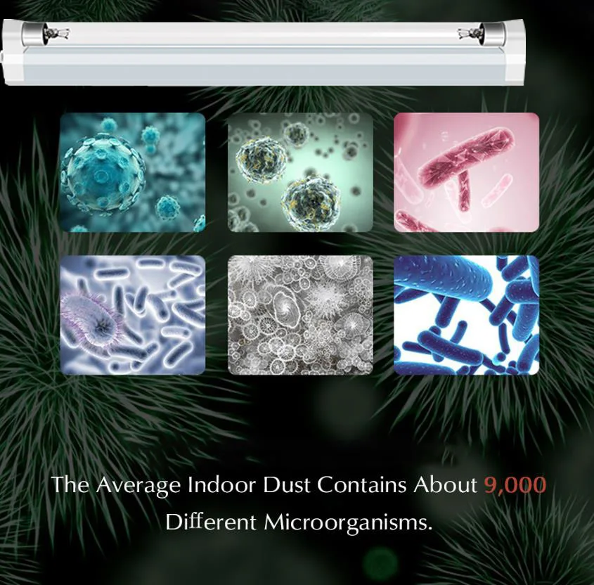 Пылезащитные клещи: пылевые клещи-это крошечные создания, которые невидимы невооруженным глазом, на кровати, подушке, диване, ковре, они повсюду в доме и причиняют много вреда: пылевые клещи укусывают кожу людей, делают зуд и покраснение кожи, позволяют людям не спать и не чувствовать дискомфорта. UV-C лучи этой лампы намного прочнее солнечного света, они могут немедленно убить пылевые клещи.