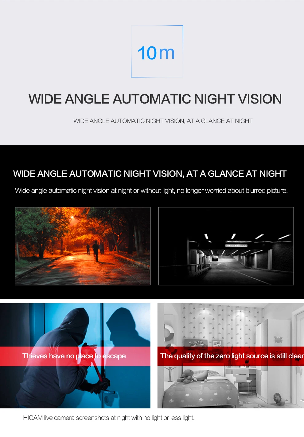 ● Широкий угол автоматического ночного видения ночью или без светильник, больше не беспокойтесь о красном изображении