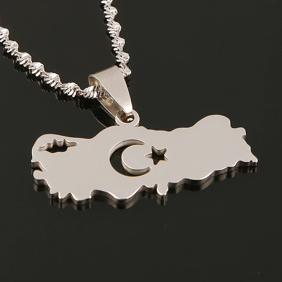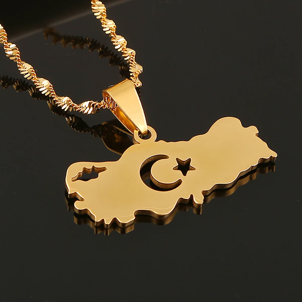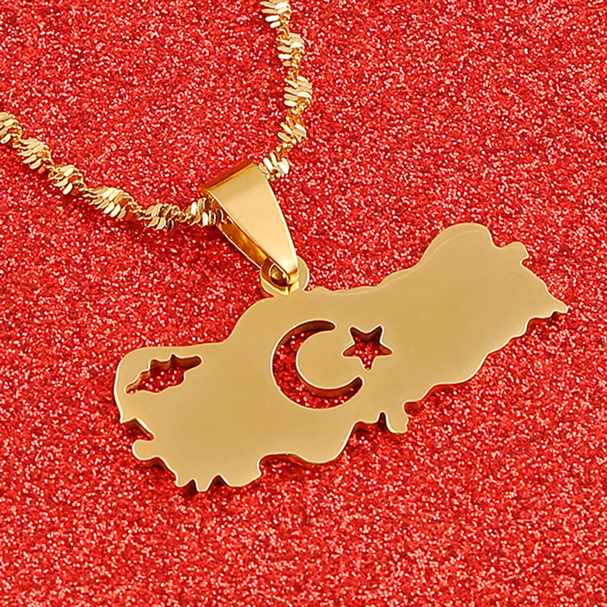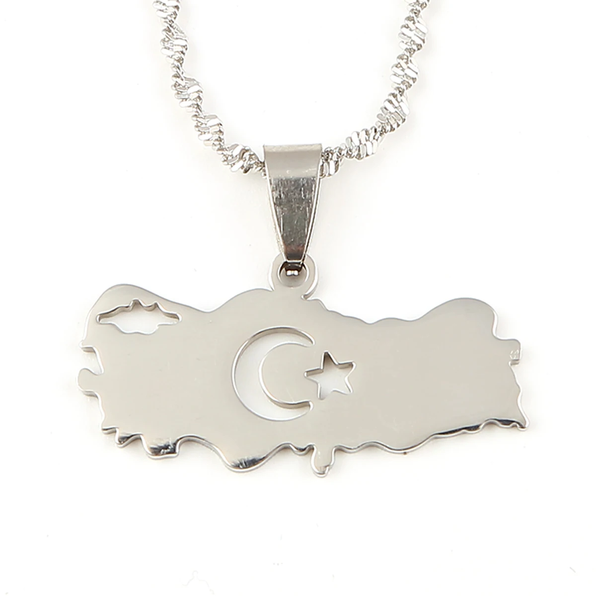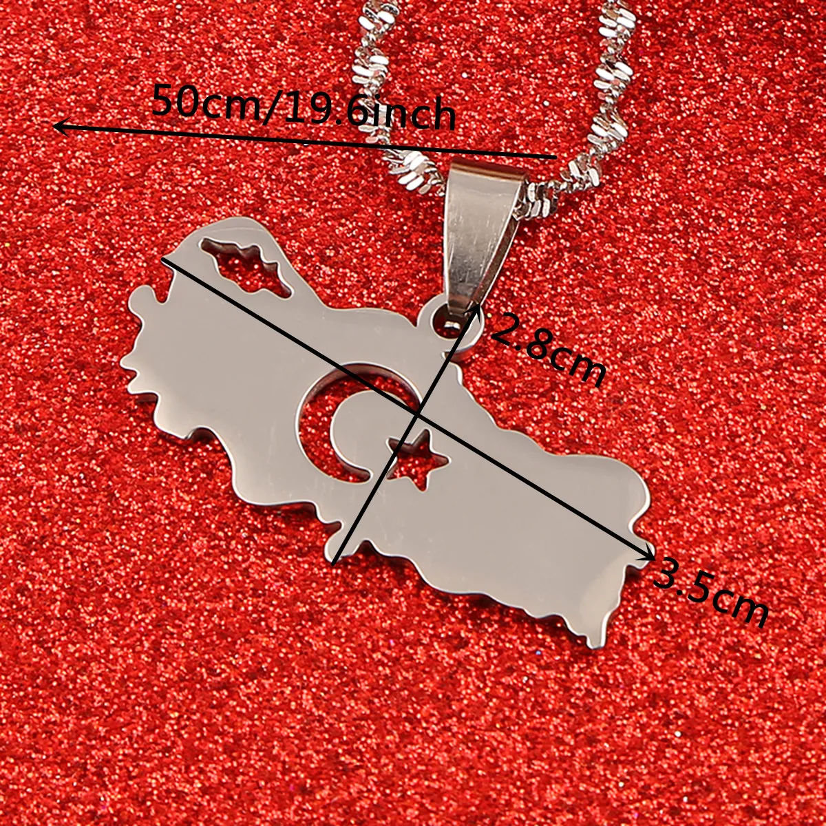 Кулон в форме флага из нержавеющей стали с изображением турецкой карты, ожерелье для женщин и мужчин, модные ювелирные украшения со звездами
