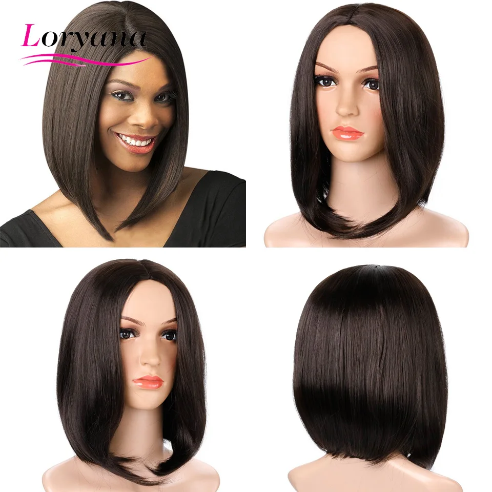 Парики из прямых черных/коричневых синтетических волос Loryana с челкой для женщин, парики из средних волос, термостойкая прическа, парики для косплея