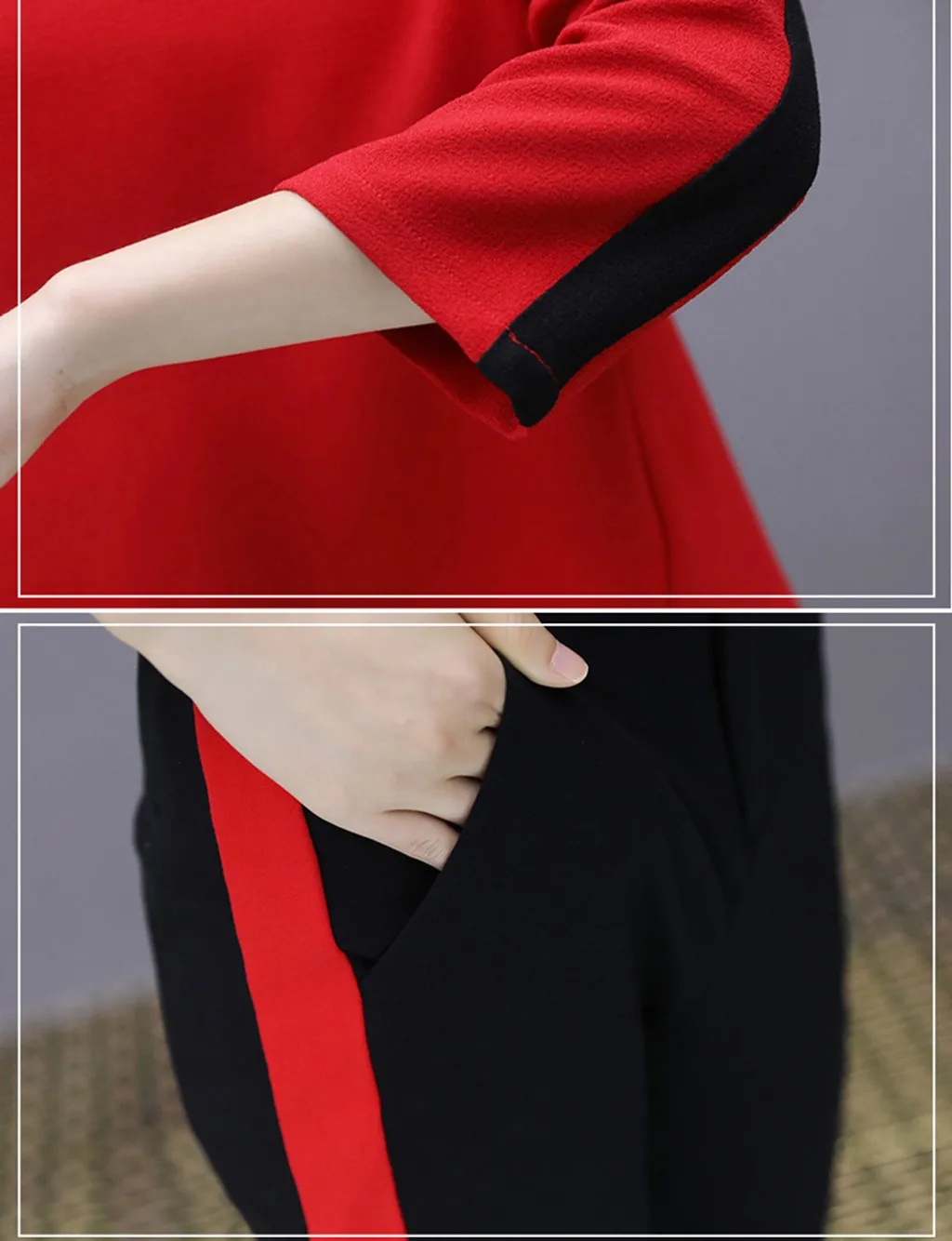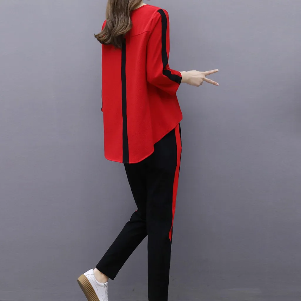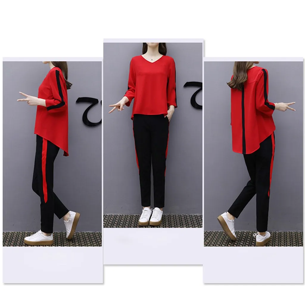 Модный женский комплект с v-образным вырезом, спортивная блузка + длинные штаны, свободный костюм