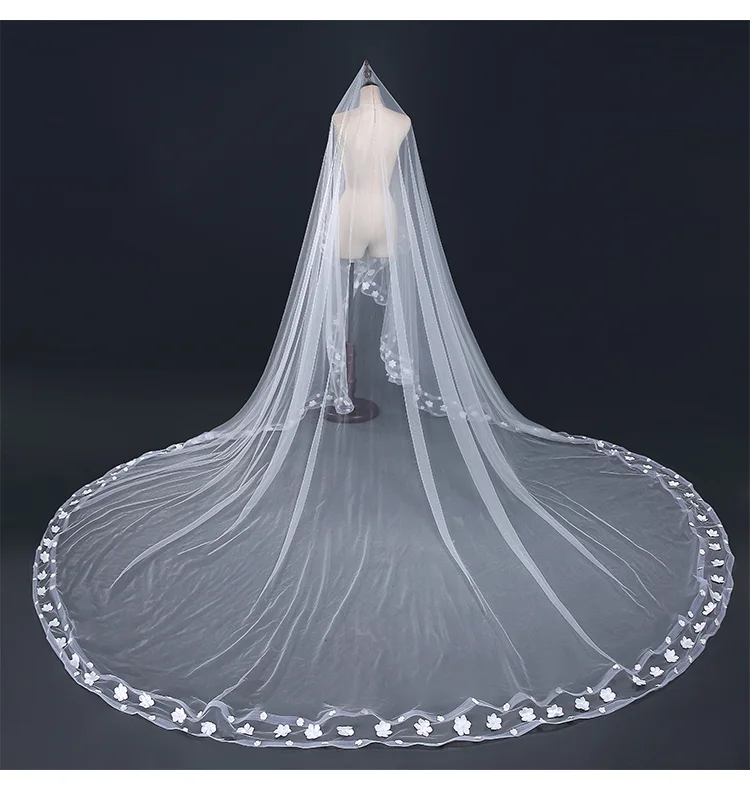 Простой и недорогой белый вуаль с крашеными краями 2018 год длина плеч аксессуары