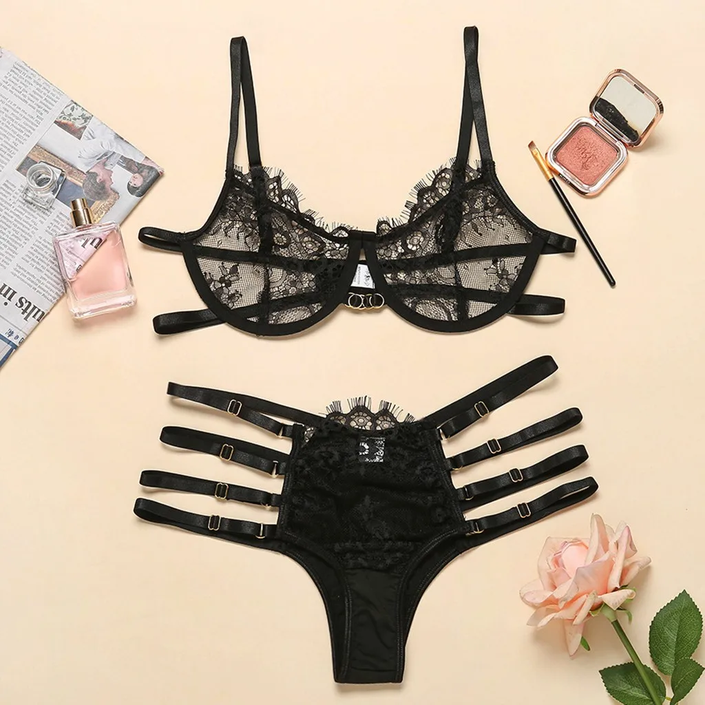 Комплект женского кружевного нижнего белья с чашками пуш-ап | Женская одежда