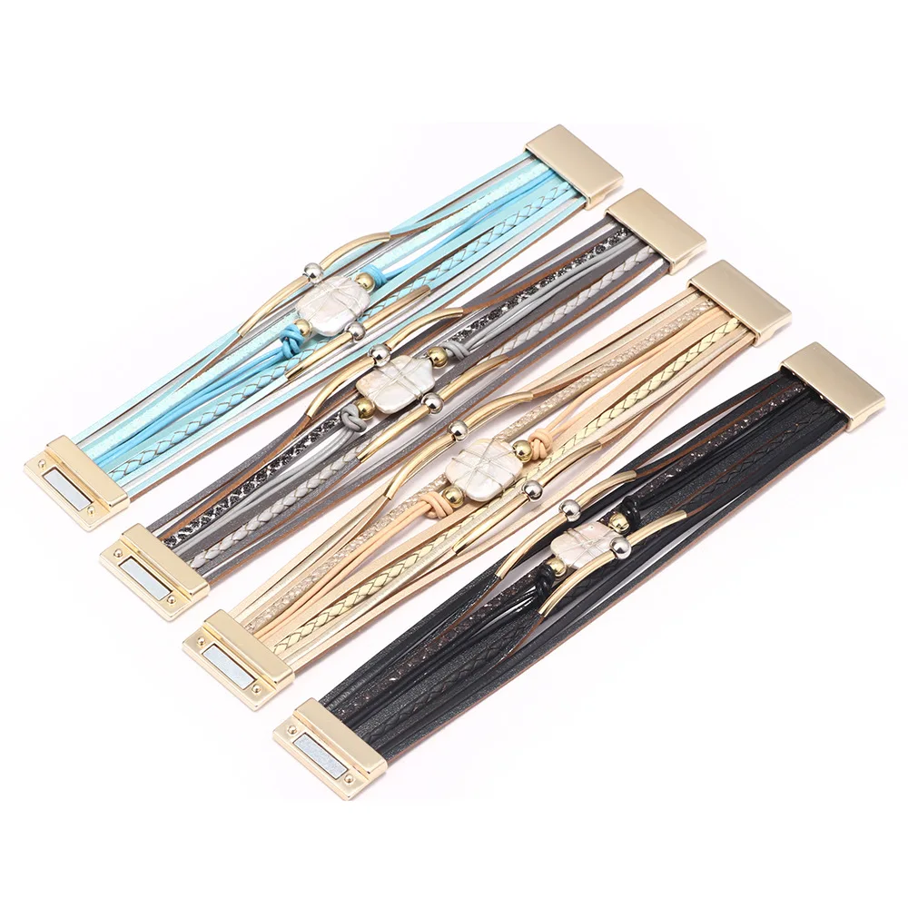 Женский Многослойный кожаный браслет ручной работы в богемном стиле, новинка 2020
