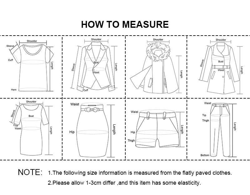 S ширина плеч: 35 длина рукава: 59 бюст: 80 талия: 64 Общая длина: 82 M ширина плеч: 36 длина рукава: 60 Бюст: 84 Талия: 68 Общая длина: 83 L Ширина плеч: 37 длина рукава: 61 Обхват груди: 98 обхват талии: 72 Общая длина: 84 Примечание: 1 дюйм = 2,54 см, 1 см = 0,39 дюймов При измерении вручную допускается погрешность в 2-3 см, что является нормальным