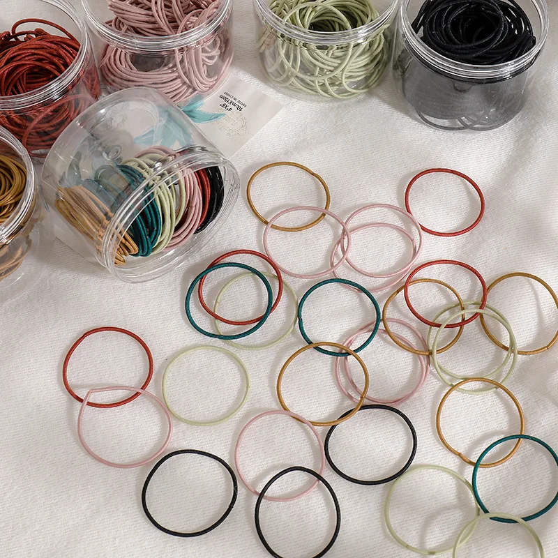 Женские резинки для волос, разноцветные тонкие резинки для фиксации хвостиков, резинки для волос, аксессуары для волос, 100 шт./кор. Упаковка: 100 шт., упаковка в коробке Размеры: диаметр около 4,5 см