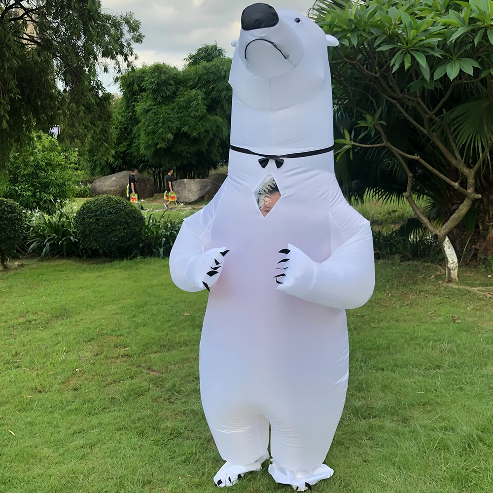 White Polar Bear Inflatable Costume Full Body Animal Halloween Cosplay Costume Carnival Party Performance Disfraz for Men Women