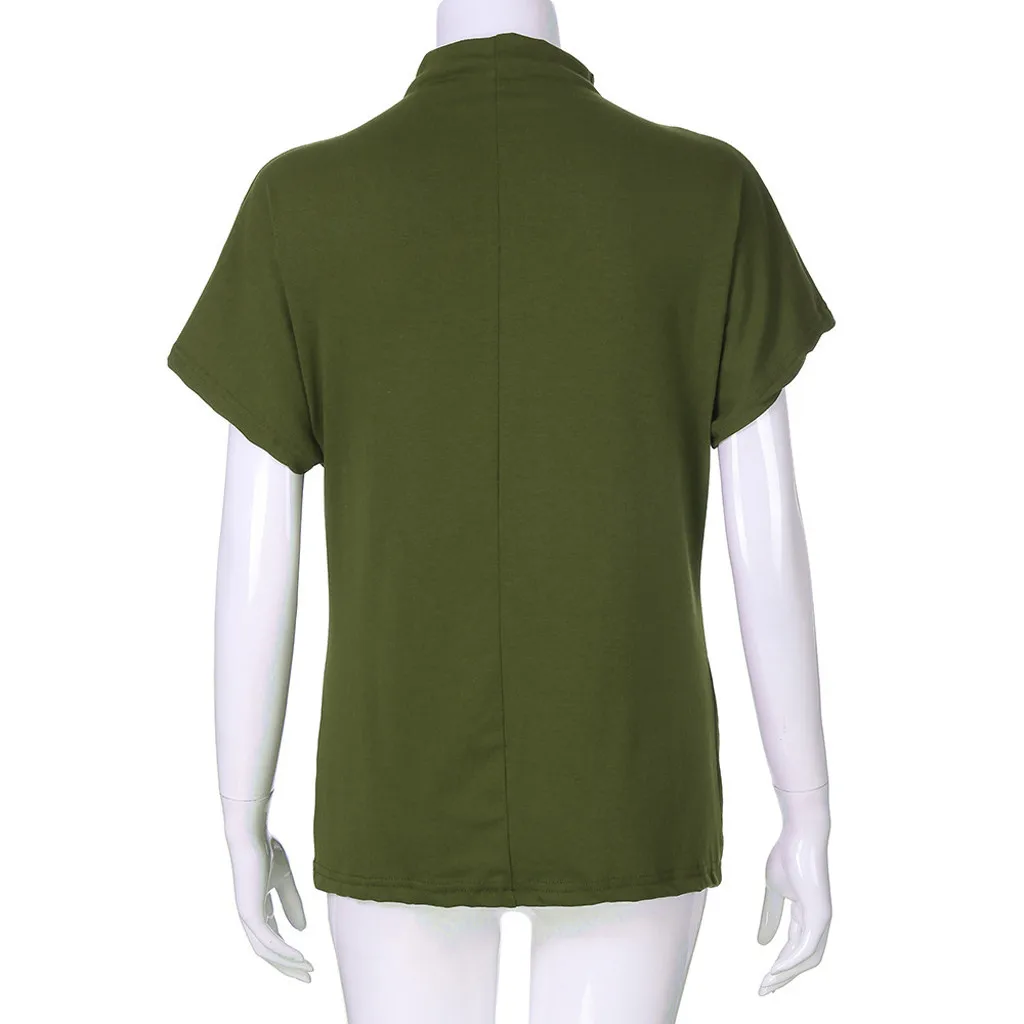 Women Turtleneck Short Sleeve Cotton Solid Casual Blouse Top T Shirt Plus Size