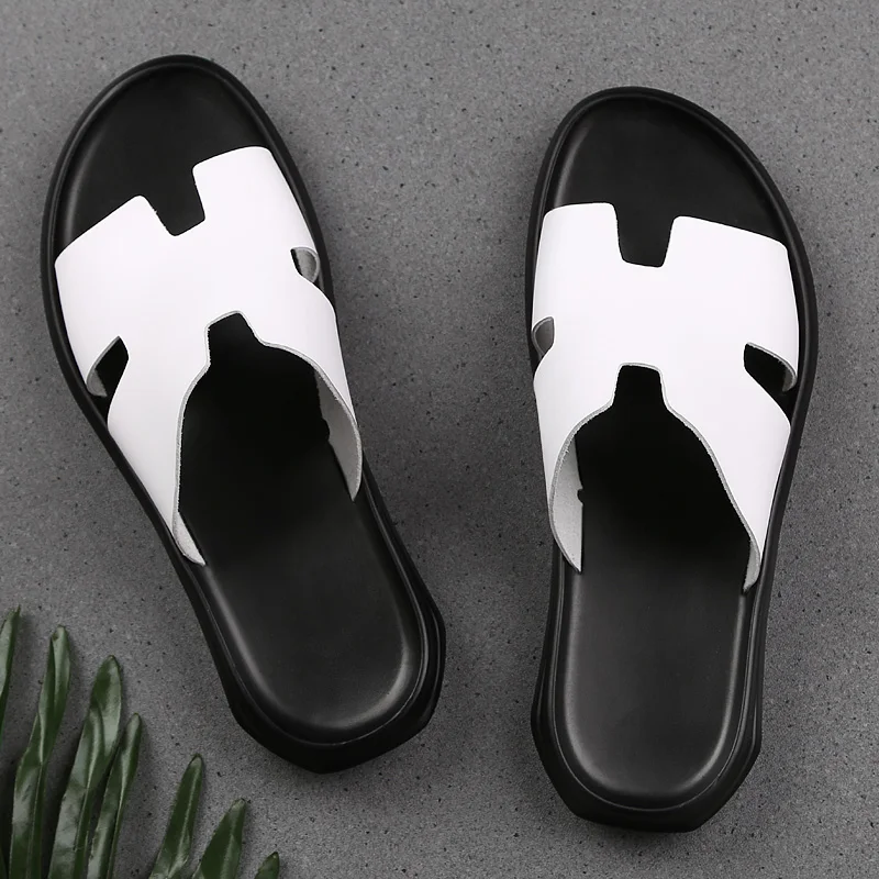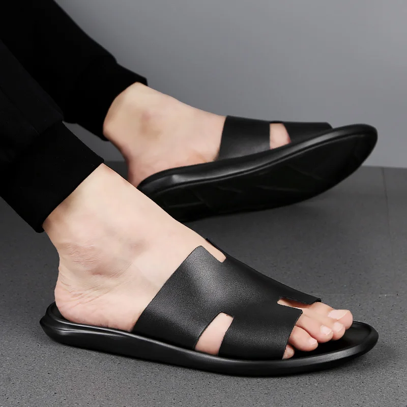 Повседневные мужские тапочки летние пляжные сандалии искусственная кожа