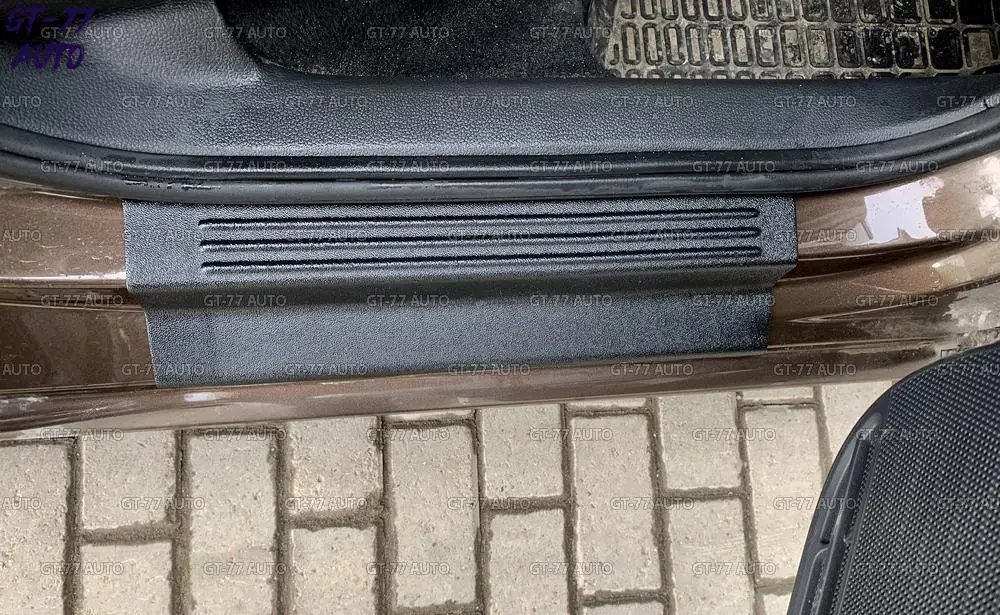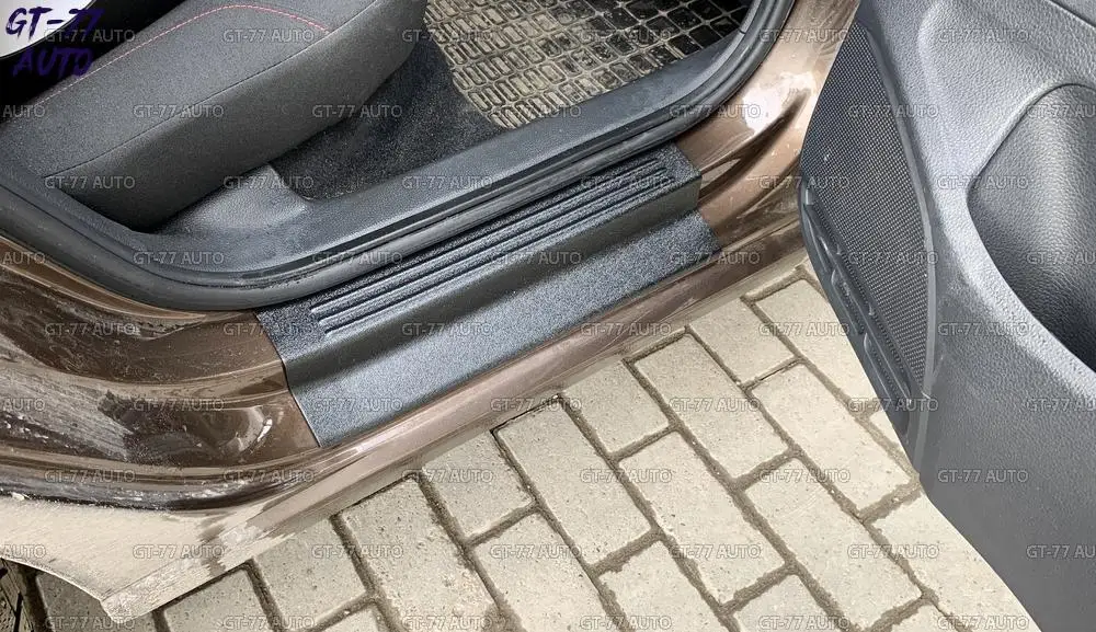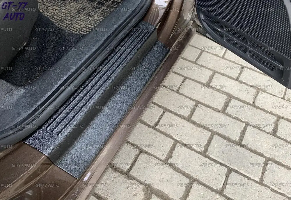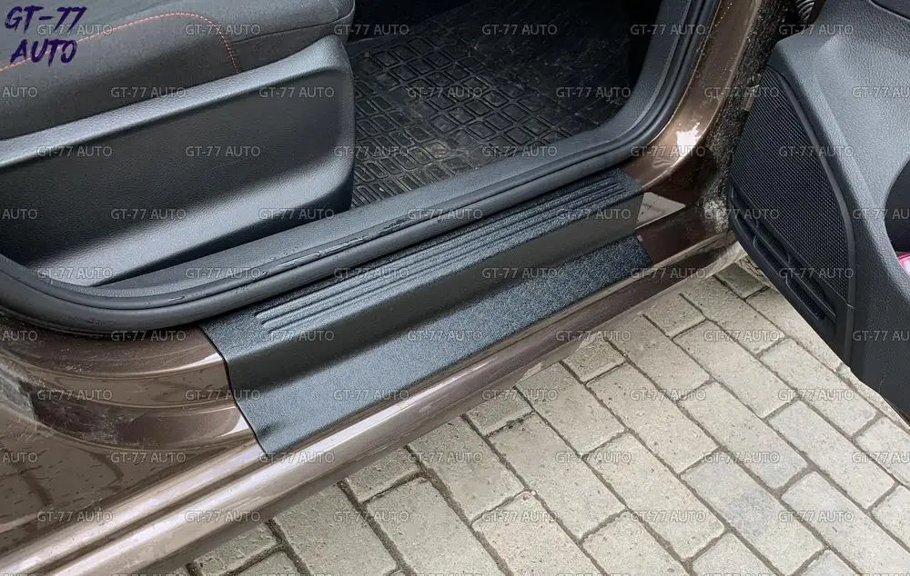 Защитные накладки дверных порогов с полосками для Volkswagen Polo Sedan 2009 2019 в проем