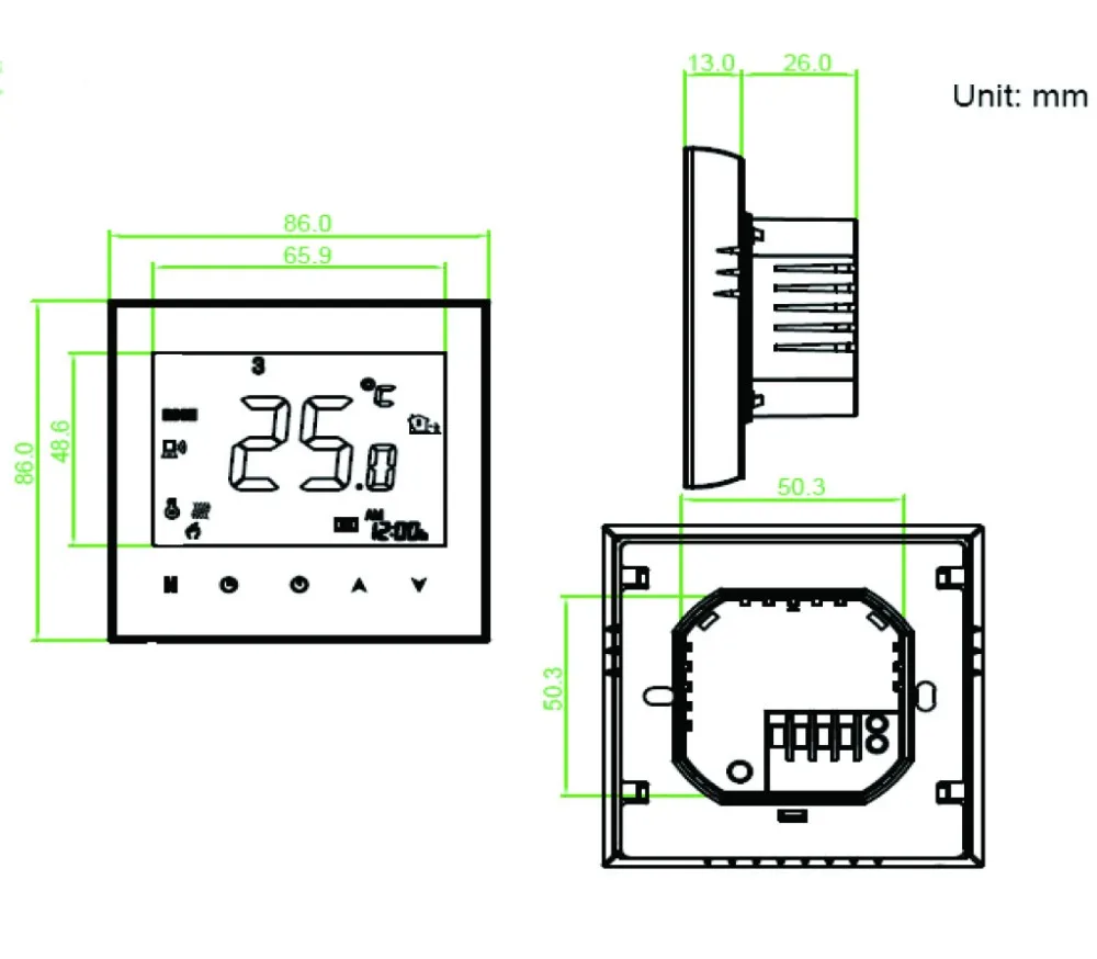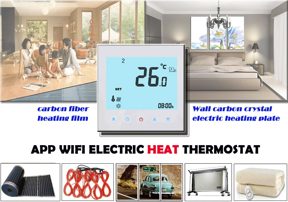 Особенности: -Функция управления Wi-Fi, контроль температуры вашего дома из любой точки мира. -Большой сенсорный ЖК-экран с подсветкой -5 + 2 6-кратные графики программ, повышают комфорт и комфорт. Эконом-класса. -Большой дисплей с подсветкой легко читается, даже в темноте. -Управление температурой в одно касание переопределяет расписание программ в любое время. -Функция блокировки клавиатуры для предотвращения неправильного использования детьми -Материал сопротивления раме, безопасный и надежный -В комнатной температуре составляет ± 0,5 °C -Память данных, когда выключено питание. -Функция автоматической калибровки комнатной температуры -Подходит для скрытой коробки 86 мм и круглой коробки 60 мм в европейском стиле. -Он добавляет много новых функций, которых раньше не было: 1. Интегрируется с Amazon Echo и Google Home 2. Поддержка 14 языков 3. Поддержка совместного использования устройств 4. Возможность контроля групп 5. Поддержка управления локальной сетью или управления 3G/4G. И т. Д ..