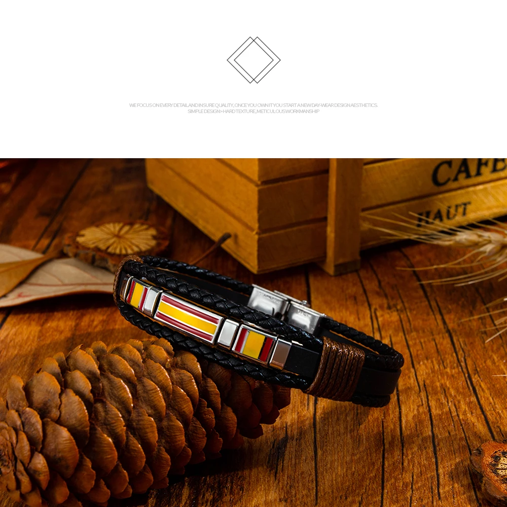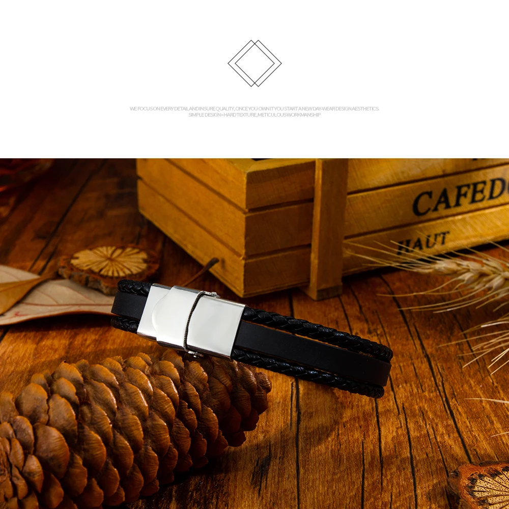 V.YA индивидуальные браслеты из нержавеющей стали, винтажный ручной тканый мужской кожаный браслет, Гравированный браслет для мужчин, ювелирное изделие, подарок