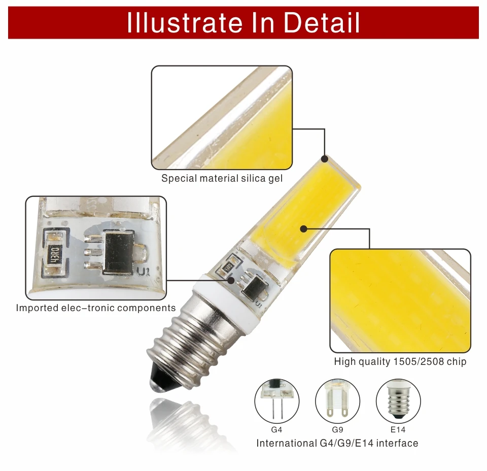 Три вида напряжения на выбор:DC12V, AC/DC12VИлиAC220-240V, Идеальная замена G4/G9 галогенная лампа непосредственно.