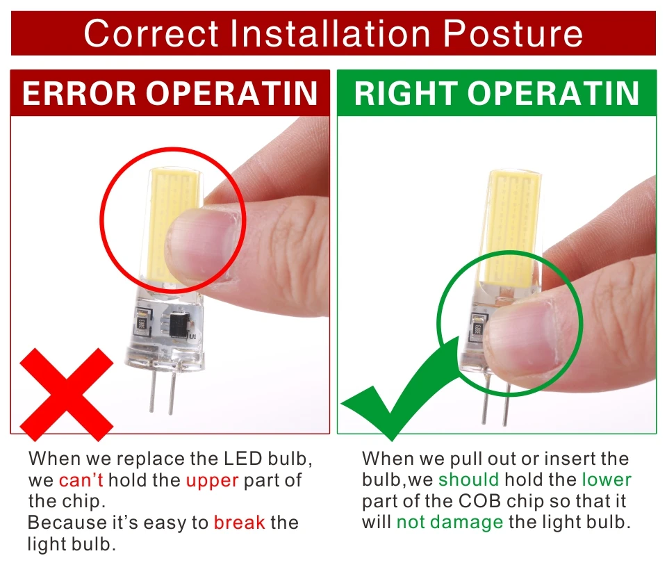 Простая установка: Стандартная база G4 / G9, может быть легко установлена вместо обычных галогенных ламп.