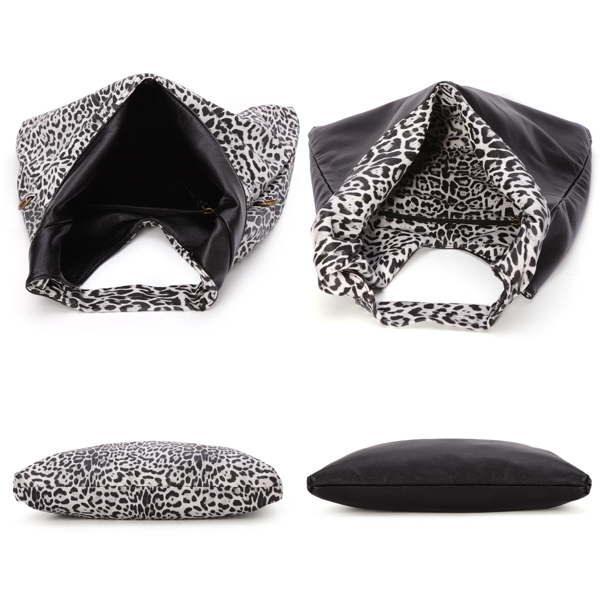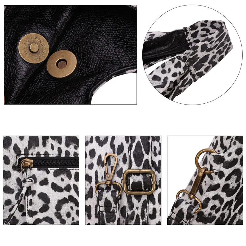 * Большая вместительная Повседневная Сумка-тоут с внутренним кошельком. * Модный черно-белый леопардовый принт. * Экологически чистый нетоксичный материал из искусственной кожи. * Моющийся материал, мягкий, гладкий и водонепроницаемый. * Разные цвета, разные способы переноски.
