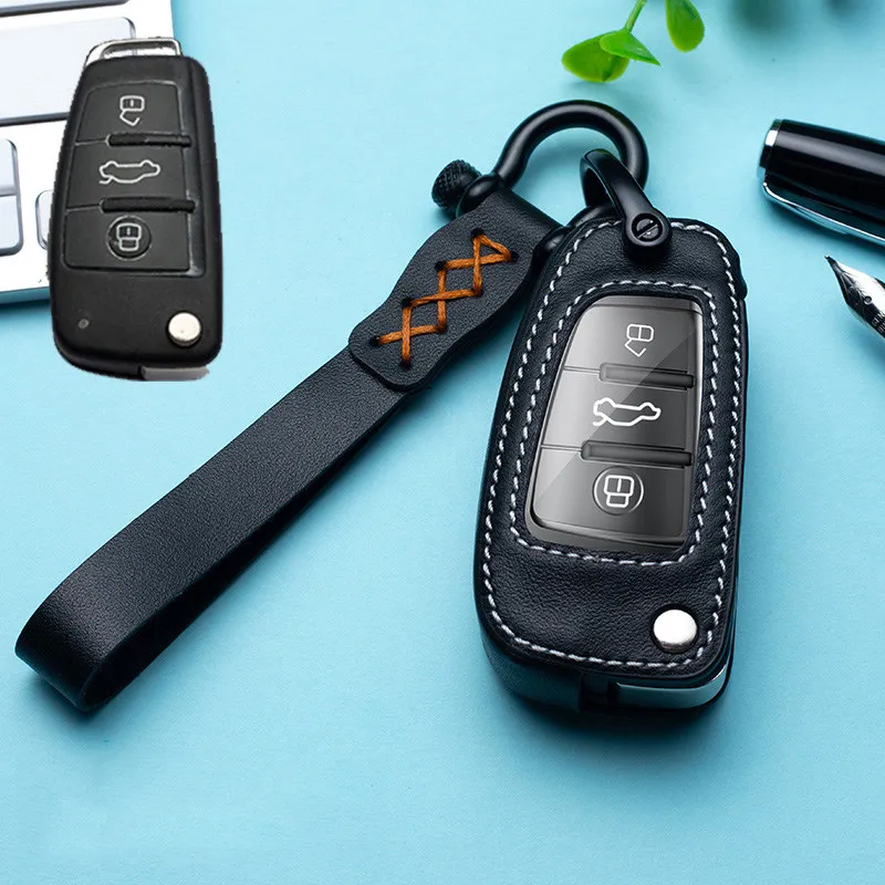 Leather Car Key Cover Protection Case For Audi A1 A3 A4 8P 8L 8V S3 RS3 Q3 Q7 C5 C6 S3 TT Auto Key Protect Holder Shell Ring