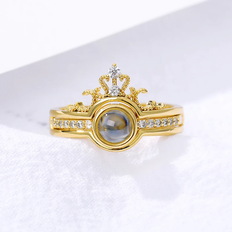 Кольцо короны принцессы розовое золото 100 язык я люблю тебя палец кольцо для женщин ювелирные изделия подружки невесты подарки Bague Femme